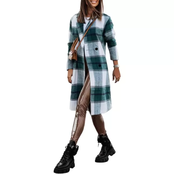 CHARTOU Women’s Lightweight Spread Collar Wool Blend Plaid Midi Long Shacket Trench Coat(H-black)