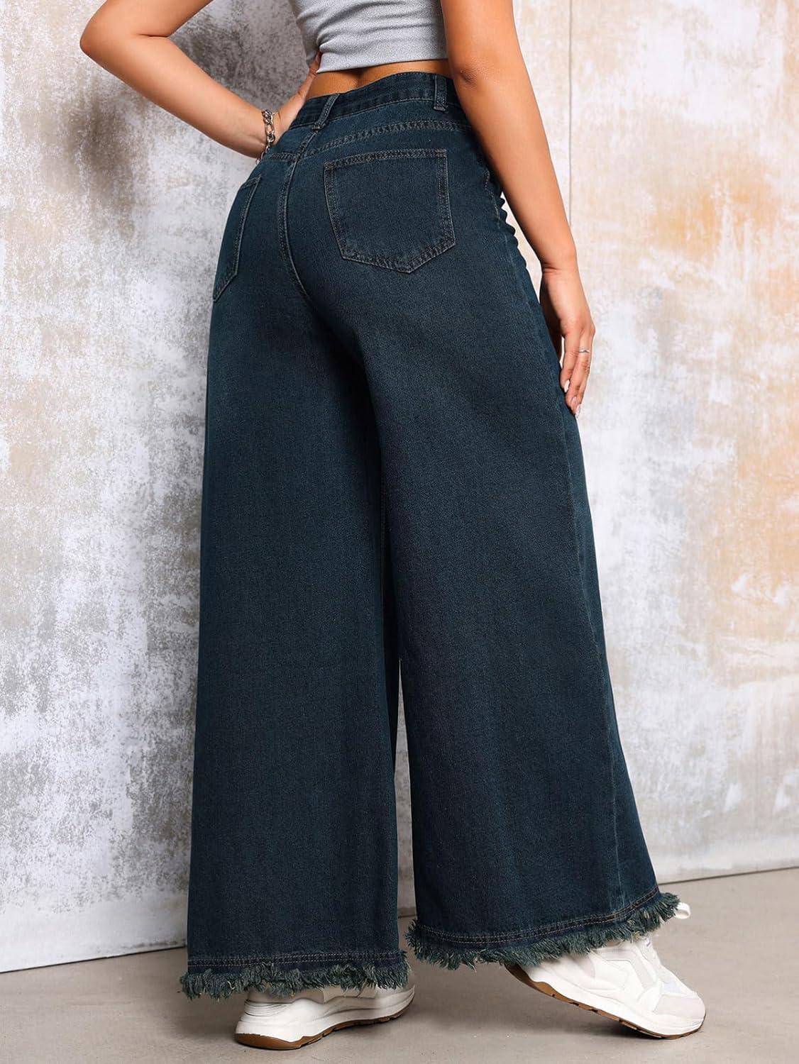 Baggy Wide Leg Jeans Woman Mid Rise Frayed Flare Jeans Boyfriend Stretchy Denim Pants Loose fit and baggy jeans for woman/ Asymmetrical flare jeans for women/ Mid waisted denim pants with pockets/ Distressed jeans for women with frayed trim Womens wide leg jeans with pockets, bell bottom jeans for women Button-end and zip-up closure, midi waistband, flare jeans silhouette, slightly stretchy jeans for women, milled leg opening, frayed and distressed wide leg pants woman, 2 front pockets with different shapes, 2 rear pockets, chic baggy jeans, asymmetrical, 2 color- light blue, dark blue Versatile Frayed Denim Jeans: Low rise jeans for woman/ Stretch blue jeans for women trendy/ Boyfriend distressed denim jeans/ Y2k jeans with pockets/ Slightly flare jeans/ Mid rise wide leg jeans for women/ Button-end frayed jeans denim pants with pockets/ Baggy jeans Baggy wide leg jeans for women boyfriend y2k flare jeans for women trendy low waisted bell bottom jeans with pockets spring distressed blue jeans stretchy mid rise denim jeans washed retro cotton palazzo trousers cowgirl outfits streetwears