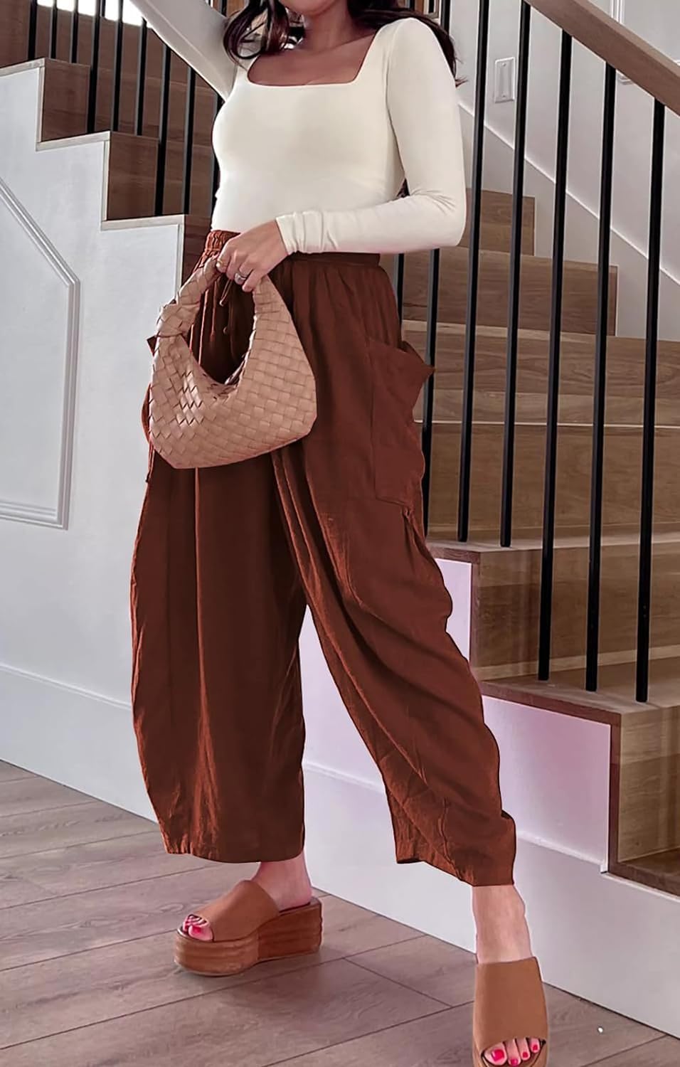 CHARTOU Boho Wide Leg Palazzo Pants for Women Casual Drawstring Pants Beach Flowy Summer Pants Gauze Lounge Stretchy elastic waist drawstring pants/ Pleated lounge pants Summer loose pants for women/ Lightweight and thin wide leg pants 【Size Guide for SUMMER PANTS】—-XS=US 0-2, S=US 4-6, M=US 8-10, L=US 12-14, XL=US 16-18, XXL=US 20-22. Please refer to the body size chart in last picture before purchase. 【SELLING POINTS for PALAZZO PANTS】—– Elastic mid rise with adjustable drawstring/ 2 Side pockets/ Wide leg sweatpants women/ Lightweight and thin thickness/ Modest solid color- white cargo pants, green pants, slacks black wide leg pants for women, womens khaki pants, yellow linen pants, coffee summer pants, pink flowy pants, khaki pants 【VERSATILE WIDE LEG PANTS】—- Weekend linen pants women lightweight flowy summer pants for woman palazzo pants for women casual gauze pants for women casual summer, daily wear wide leg sweatpants women lounge pants, streetwear drawstring pants women, holiday vacation wide legged pants cotton loose pants, club beach cover up pants straight leg sweatpants for women beach pants Boho flowy pants slacks khaki pants white cargo pants