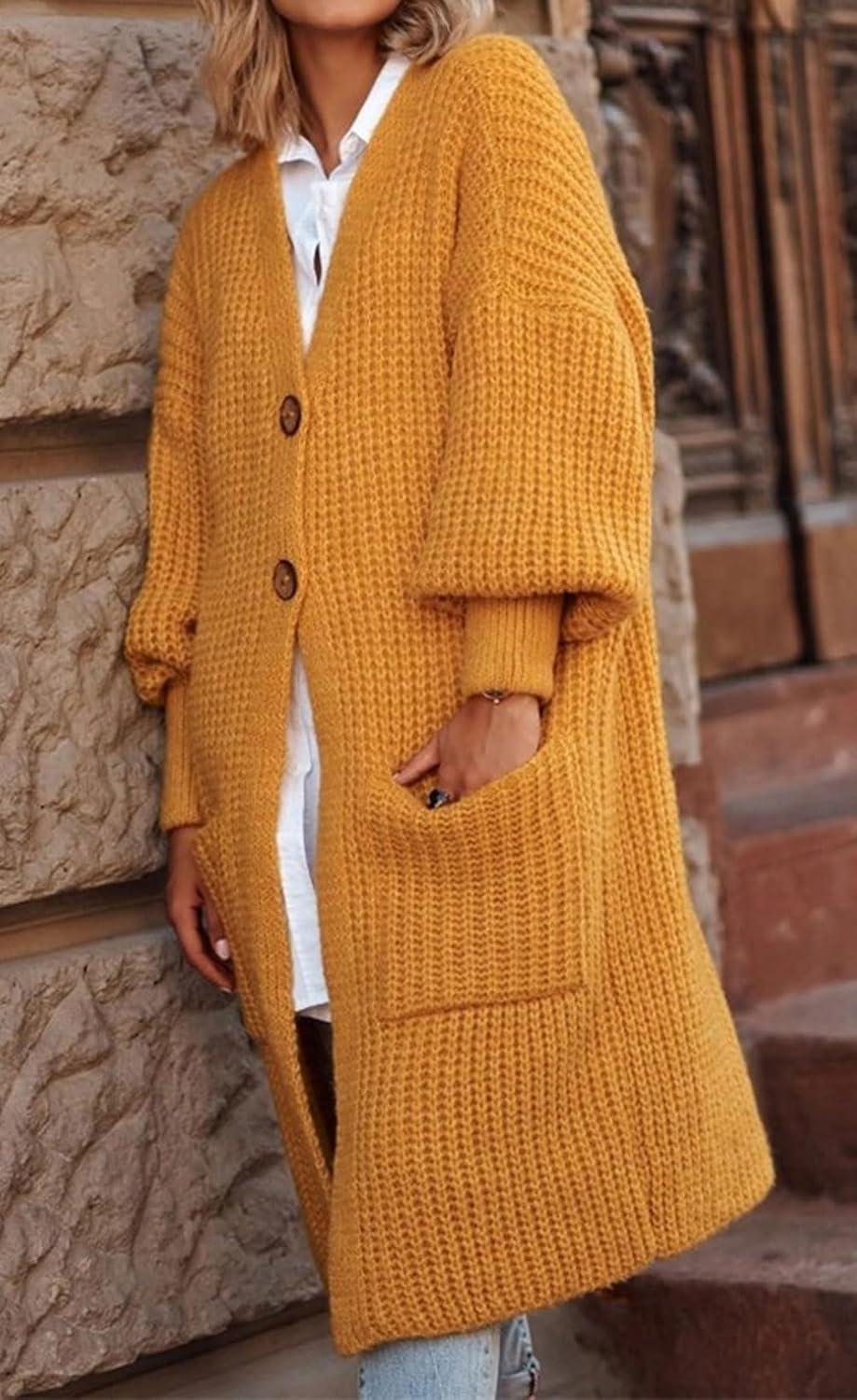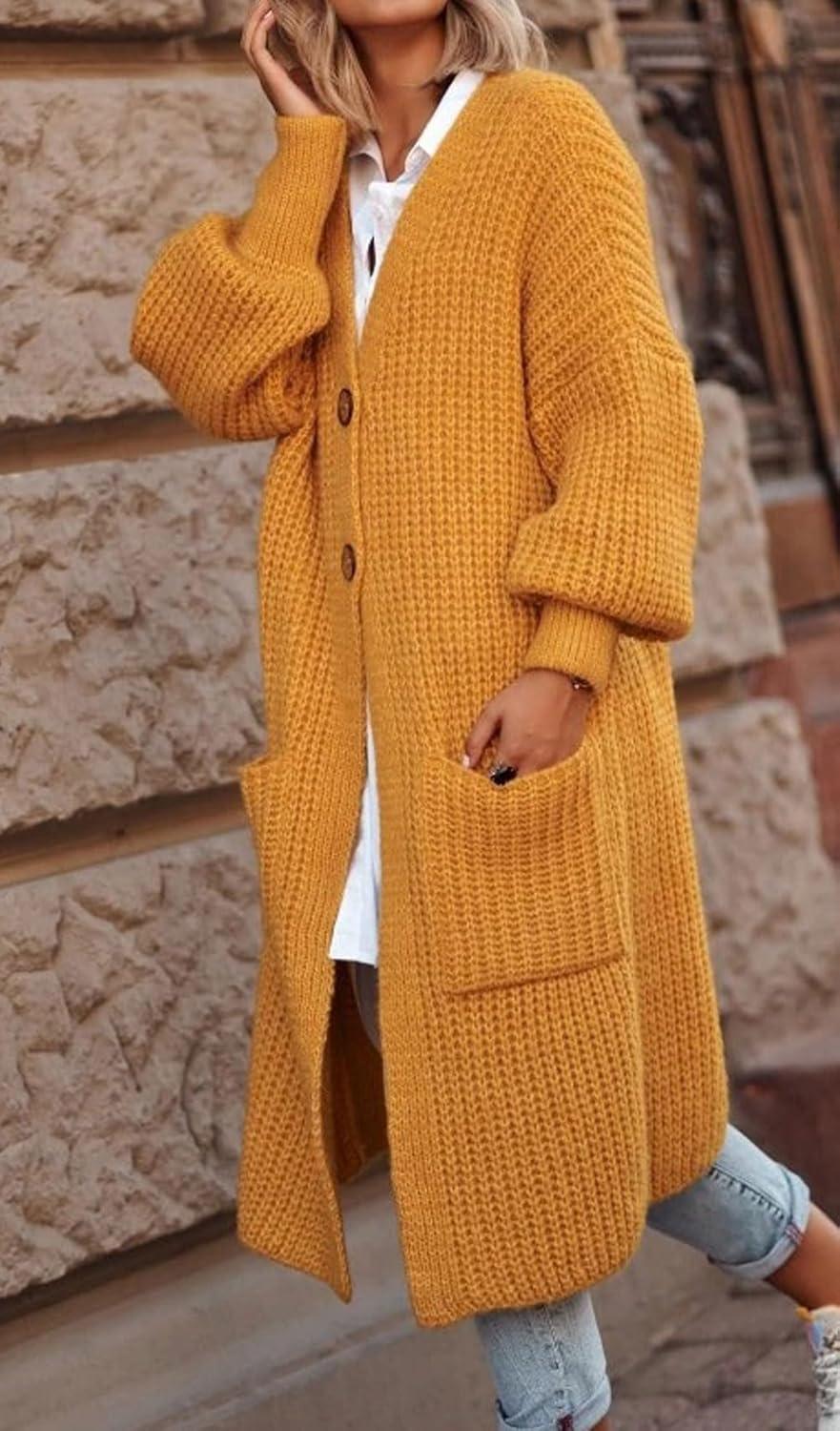 Casual Long Cardigan Sweater for Women Fall 2025 Open Front Chunky Knit Sweaters Outwear Coat/ Long chunky cardigan sweater for women/ Lantern long sleeve winter sweater outfits/ Slouchy women long cardigan sweater/ Size Tips: S=US 4-6, M=US 8-10, L=US 12-14, XL=US 16-18, XXL=US 20; Constructed with comfort material, this long fall women open front cardigan sweater flexibility to accommodate various body shapes and sizes, effortlessly providing a flattering fit/ Chunky Knit Long Cardigan: Below knee length long cardigan sweater featuring front two button v neck, loose drop shoulder long sleeve, lantern sleeve design with two front hand pockets, classy chunky long sleeve long cardigan sweater will effortlessly offer a slouchy fit, and keep you warm during fall winter cold day/ Versatile Long Cardigan Outwear Coat: Women black button down long cardigan sweater for 2025 fall outfits/ Pumpkin yellow chunky knit coatigan for women Halloween sweater/ Slouchy long lantern sleeve chunky cardigan sweater for women knit overcoat/ Grey long knit coat for women causal business work outwear coat