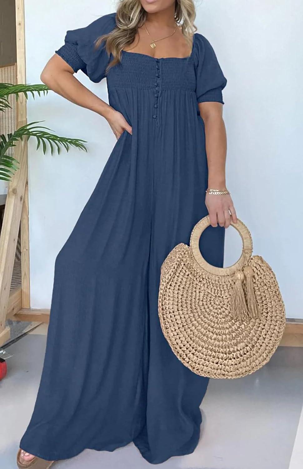 CHARTOU Casual Smocked Jumpsuit Women Short Sleeve Wide Leg Jumpsuit Square Neck Loose Overalls Flowy Long Romper Smocked jumpsuit women romper dress/ Loose baggy jumpsuit Lightweight and thin fabric/ Ruffle pleated wide leg jumpsuit long romper 【Size Guide for SMOCKED JUMPSUIT】—-XS=US 0-2, S=US 4-6, M=US 8-10, L=US 12-14, XL=US 16-18, XXL=US 20-22. Please refer to the body size chart in last picture before purchase. 【SELLING POINTS for FLOWY JUMPSUIT】—– Button down long romper/ Puff sleeve romper short sleeve jumpsuit/ Square neck jumpsuit/ Wide leg jumpsuits for women/ Stretchy elastic bust smocked jumpsuit women/ Plain modest color- orange red, royal blue jumpsuit for women, black jumpsuit for women, green jumpsuit women 【VERSATILE WIDE LEG JUMPSUIT】—- Weekend casual short sleeve jumpsuit for women smocked jumpsuit women maternity jumpsuit, daily square neckline jumpsuit with smocked bodice button romper dress, streetwear square neck jumpsuit wide leg jumpsuits for women bodice, holiday vacation puff sleeve romper for women spring jumpsuit culottes coverall, night club flowy jumpsuit wide leg overalls for women flattering jumpsuit, easter romper for women jumper flare jumpsuits women overalls loose fit Square Neckline Jumpsuit with Smocked Bodice Button Short Puff Sleeves Wide Leg for Women Baggy Loose Flowy Romper Women's Summer Smocked Jumpsuits Square Neck Shirred Short Sleeve Casual High Waist Wide Leg Long Romper Jumpsuits for Women Dressy Short Sleeve Smocked High Waist Wide Leg Pants Loose Romper Outfits Women's Casual Loose Overalls Jumpsuits One Piece Sleeveless Wide Leg Long Pant Rompers With Pockets