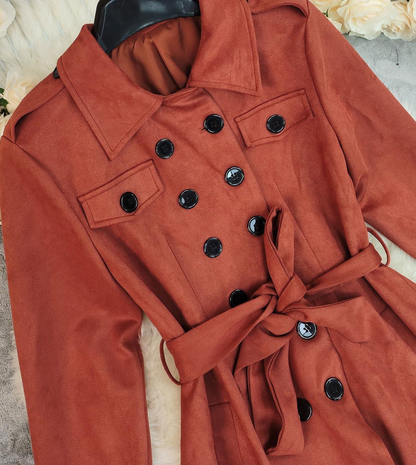 Premium faux suede long jacket for women/ Elegant double breast office work trench overcoat for women/ Long dressy travel jacket for women/Faux Suede Trench Coat for Women: Our women long faux suede jacket features sophisticated trench coat style, and soft faux suede leather material, suitable for business casual environments/Design: Vintage double breast duster jacket, clean turn-down lapel collar trench coat, fake flap pockets for decorated, 2 side pockets for essential carrying, removable belt for any body type fitting, hit around mid-calf length, casual slim fit leather duster overcoats/ Occasion: Long faux suede jacket for women casual coat/ Vintage double breast suede jacket for women casual business work jacket/ Mid long faux suede leather jacket for women chic travel overcoat/ Elegant duster trench coat for women fall winter casual coat outwear/ Trendy brown long winter coats for women outing