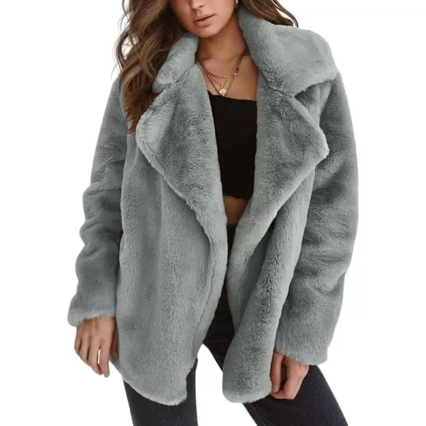 CHARTOU Women Winter Faux Fur Coat Fuzzy Sherpa Fleece Jacket Open Front Teddy Bear Coat Overcoat(Grey)