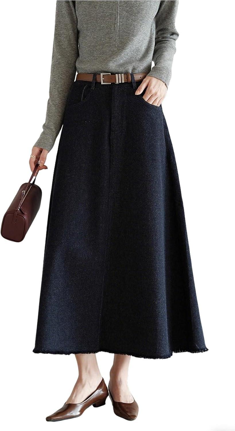 Long denim skirt for women back elastic waist/ Frayed long a line jean skirt with pockets/ Sophisticated long jean skirt for women trendy/ Fit Type: A-line silhouette. The CHARTOU long denim skirt offers a casual comfort fit. Its long frayed jean skirt provides versatile styling, making it perfect for fall winter fashion clothing or casual office-ready polished outfits/ Features: Crafted from premium cotton blend fabric for casual and comfort fit. Its loose fit style, back elastic high waist, frayed raw hem cut, and two hand pockets add stylish flair. Thickness-Medium, Stretch-Medium, Softness-Soft. The long frayed denim skirt keeping you both trendy and classy/ Occasion: Built for fall winter outfits for women 2025, those fashion clothing item are versatile for various occasion. Women elegant long denim skirt for women fall casual jean skirt/ Back elastic high waist a line frayed denim skirt for women gathering outfits/ Raw hem maxi long jean skirt for women travel holiday outfits/ Western style long denim skirt for women casual business work outfits