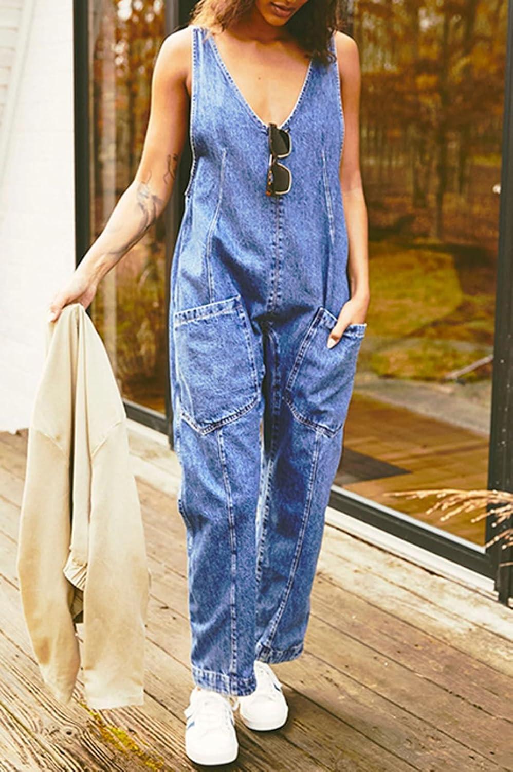 CHARTOU Loose Denim Jumpsuit for Women Casual Jean Overalls Baggy Cargo Jumpsuit Sleeveless Bib Overalls Pockets Vintage denim overalls for women loose fit jean jumpsuit Loose and oversized denim jumpsuit coveralls, baggy style, more breathable and comfy to wear in spring, summer and fall 【Size Guide for DENIM OVERALLS】—-XS=US 0-2, S=US 4-6, M=US 8-10, L=US 12-14, XL=US 16-18, XXL=US 20-22. Please refer to the body size chart in last picture before purchase. 【SELLING POINTS for DENIM JUMPSUIT】—– Deep V neck/ Sleeveless tank jumpsuit with adjustable straps/ Backless hollow out back (more comfortable)/ 2 Side pocket/ Patchwork style jean jumpsuit/ Harem pants lounge pants jumpsuit/ Solid color- dark blue, black overalls for women, light blue jean jumpsuit for women onesie 【VERSATILE JEAN OVERALLS】—- Weekend baggy denim jumpsuit for women casual jumpsuits for women jean overalls cute, daily wear denim overalls for women loose fit, streetwear cargo jumpsuit maternity jeans pants, holiday vacation spring outfits for women 2024 denim romper jumper, night club blue jean jumpsuit for women coveralls harem pants jeans, gardening overalls for women, hippie clothes for women barrel jeans women one piece outfits onesie Denim Jumpsuits for Women Casual Sleeveless Loose Baggy Overalls Jeans Pants Jumpers with Pockets Womens Overalls 2024 Summer Denim Jumpsuit Sleeveless Adjustable Strap Loose Fit Jean jumper Bib Overalls Women's Fashion Baggy Loose Linen Overalls Jumpsuit Oversized Casual Sleeveless Rompers with Pockets Overalls for Women Loose Fit Jean Denim Bib Jumpsuit Stretch Overall Pants