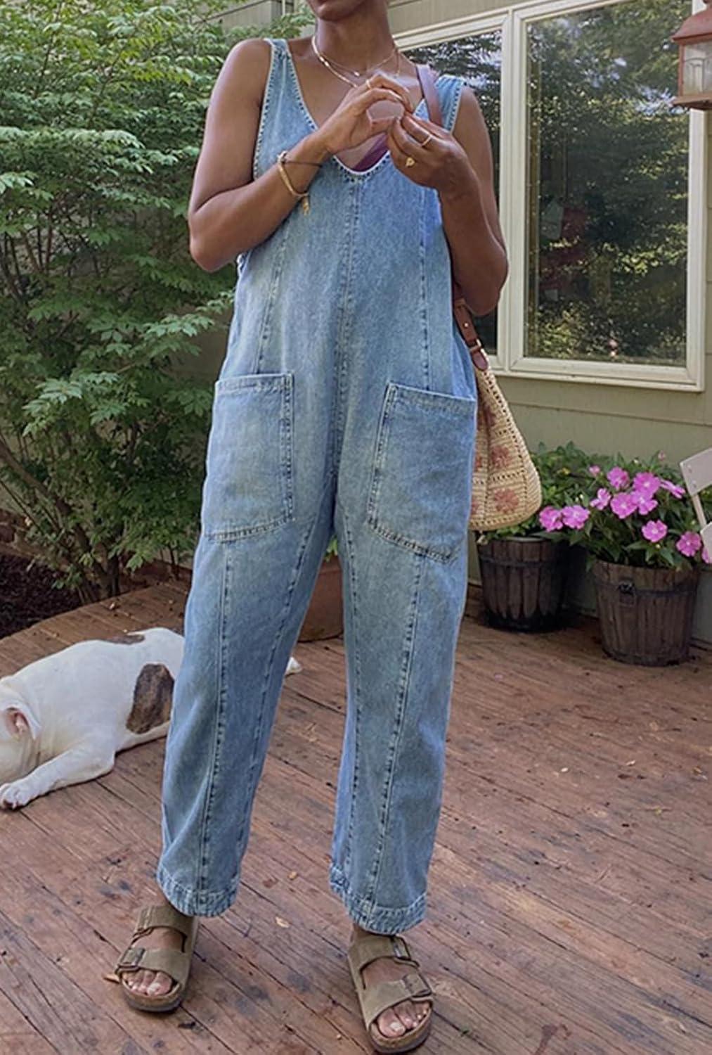 CHARTOU Loose Denim Jumpsuit for Women Casual Jean Overalls Baggy Cargo Jumpsuit Sleeveless Bib Overalls Pockets Vintage denim overalls for women loose fit jean jumpsuit Loose and oversized denim jumpsuit coveralls, baggy style, more breathable and comfy to wear in spring, summer and fall 【Size Guide for DENIM OVERALLS】—-XS=US 0-2, S=US 4-6, M=US 8-10, L=US 12-14, XL=US 16-18, XXL=US 20-22. Please refer to the body size chart in last picture before purchase. 【SELLING POINTS for DENIM JUMPSUIT】—– Deep V neck/ Sleeveless tank jumpsuit with adjustable straps/ Backless hollow out back (more comfortable)/ 2 Side pocket/ Patchwork style jean jumpsuit/ Harem pants lounge pants jumpsuit/ Solid color- dark blue, black overalls for women, light blue jean jumpsuit for women onesie 【VERSATILE JEAN OVERALLS】—- Weekend baggy denim jumpsuit for women casual jumpsuits for women jean overalls cute, daily wear denim overalls for women loose fit, streetwear cargo jumpsuit maternity jeans pants, holiday vacation spring outfits for women 2024 denim romper jumper, night club blue jean jumpsuit for women coveralls harem pants jeans, gardening overalls for women, hippie clothes for women barrel jeans women one piece outfits onesie Denim Jumpsuits for Women Casual Sleeveless Loose Baggy Overalls Jeans Pants Jumpers with Pockets Womens Overalls 2024 Summer Denim Jumpsuit Sleeveless Adjustable Strap Loose Fit Jean jumper Bib Overalls Women's Fashion Baggy Loose Linen Overalls Jumpsuit Oversized Casual Sleeveless Rompers with Pockets Overalls for Women Loose Fit Jean Denim Bib Jumpsuit Stretch Overall Pants