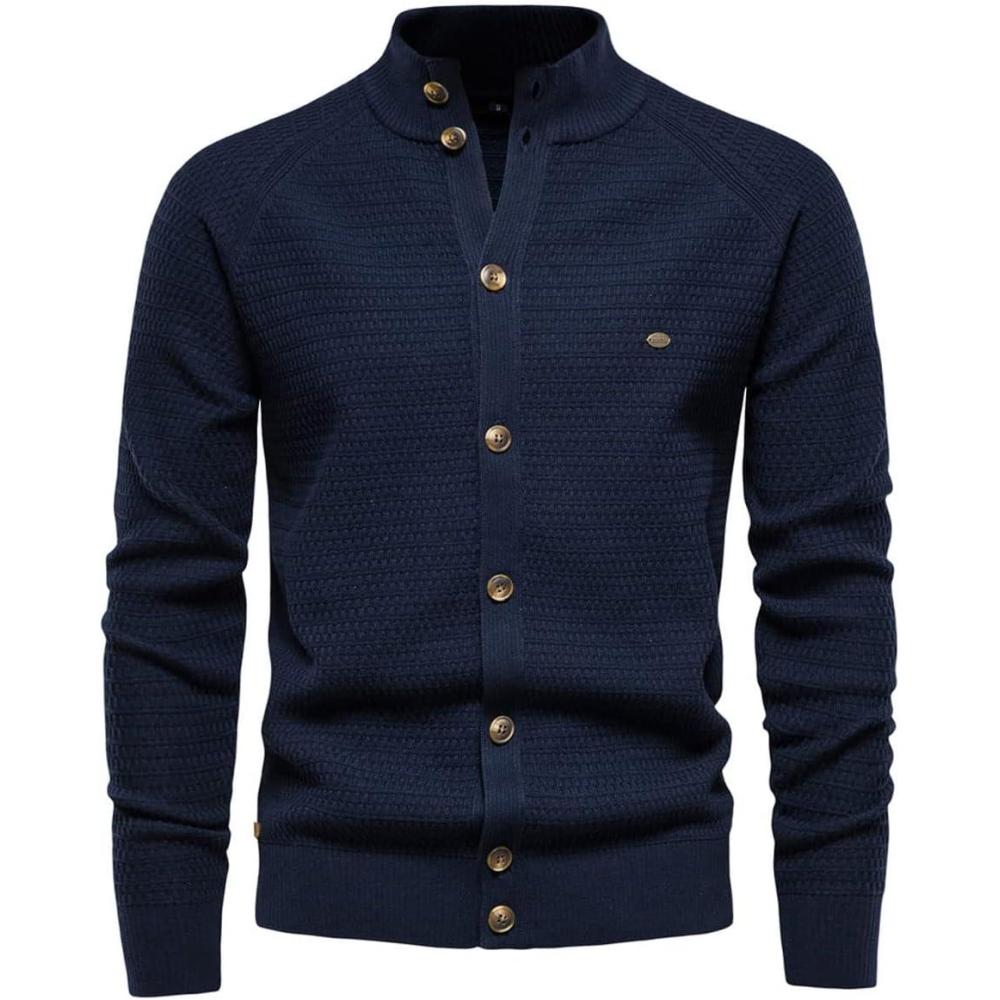 CHARTOU Men Casual Knitted Cardigan Sweater Stand Collar Button Up Knit Sweater Jacket Regular Fit(Navy)