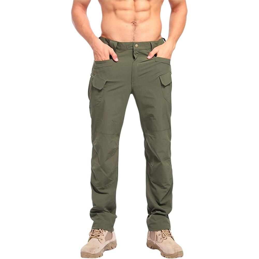 CHARTOU Men Quick Dry Hiking Pants Sweatpants Lightweight Waterproof Joggers with Pockets Outdoor Stretch(Armygreen)