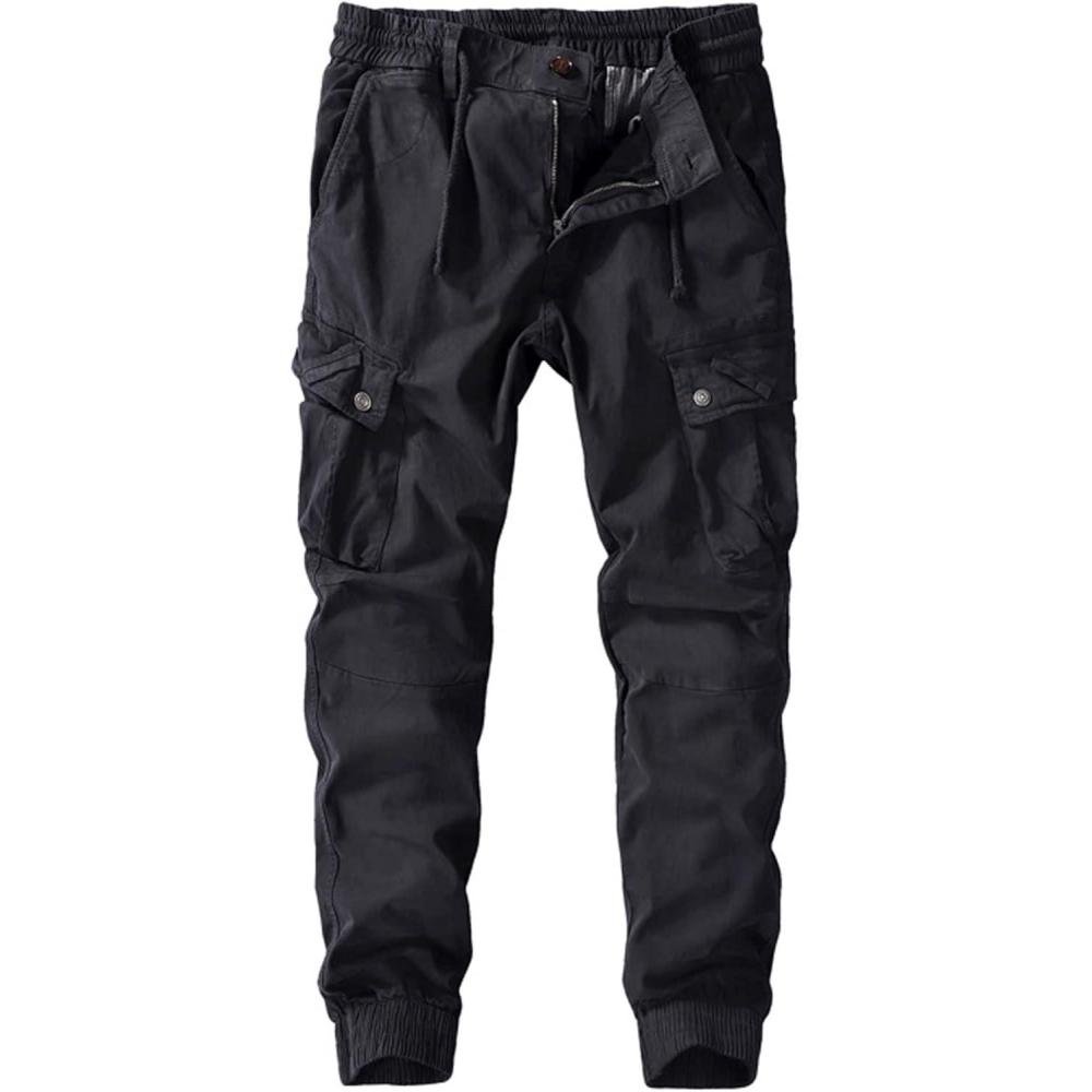 CHARTOU Men Stretch Waist Cargo Pants Work Pants Lightweight Outdoor Tactical Jogger Pants Pocket(Black)