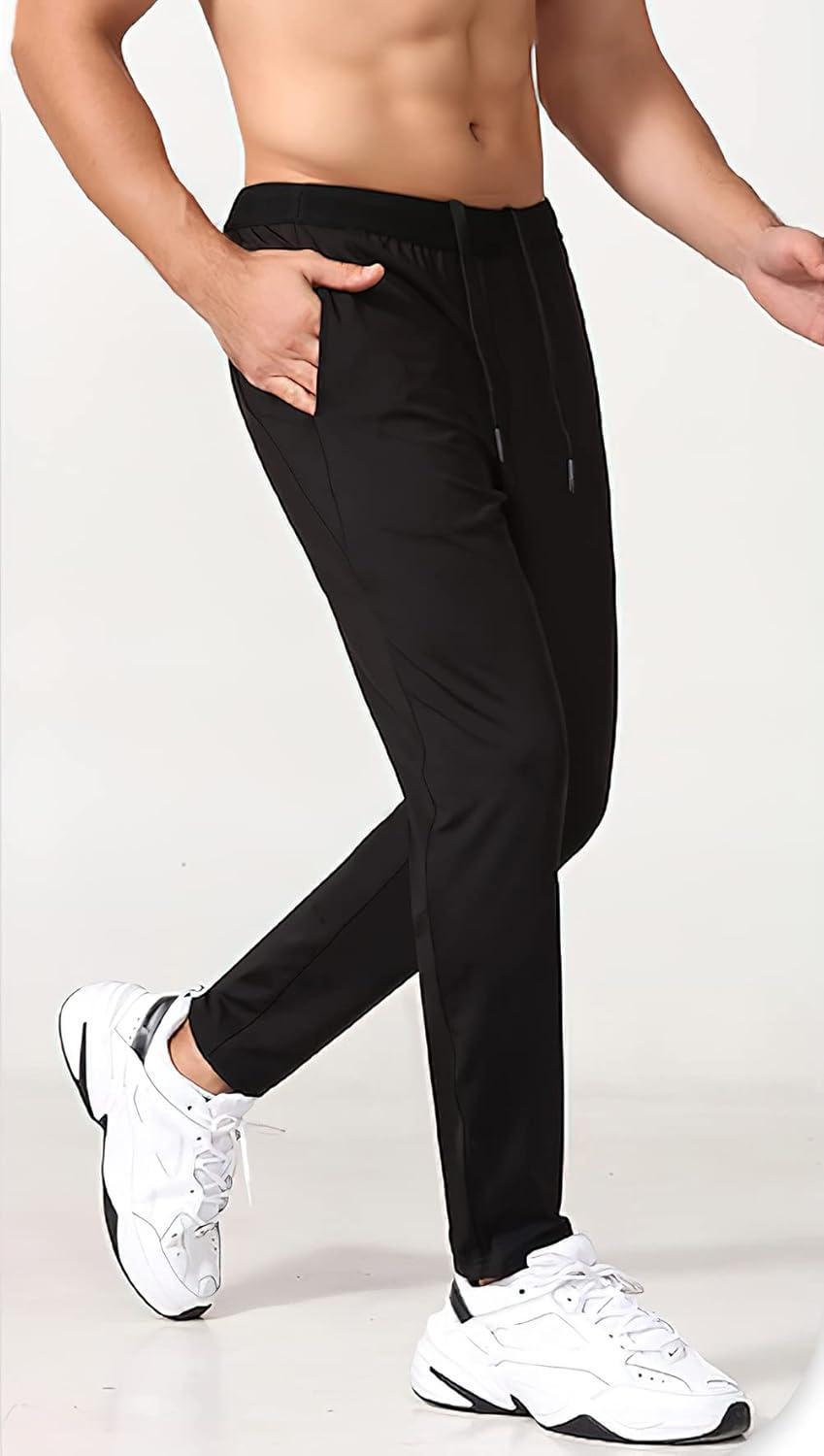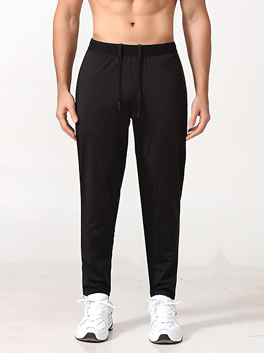 CHARTOU Men’s Athletic Drawstring Waist Quick Dry Durable Tapered Fitness Tracksuit Jersey Pants(Black)