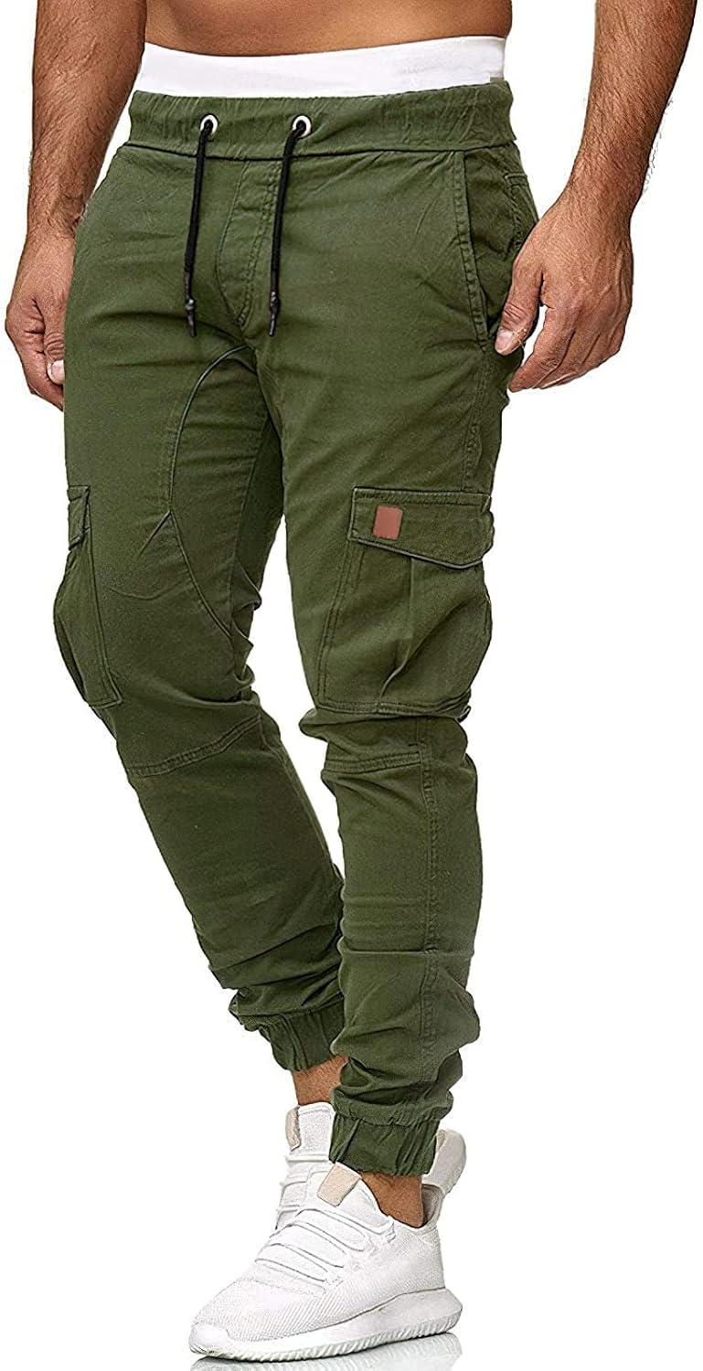 CHARTOU Men’s Athletic Sweatpants Drawstring Elastic Waist Tapered Jogger Cargo Pants(Army Green)