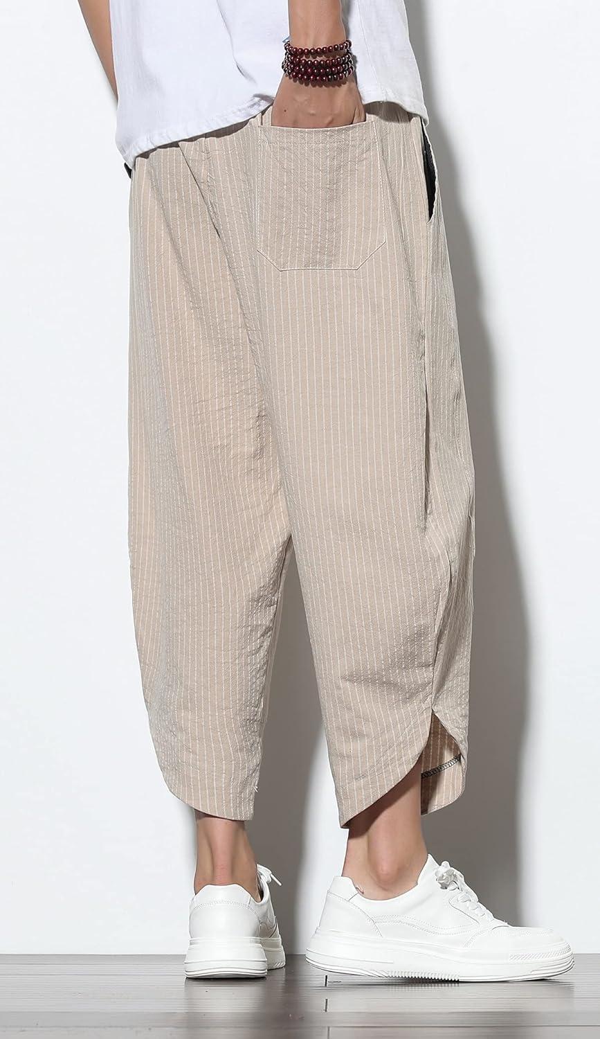 CHARTOU Men’s Baggy Drawstring Waist Wide-Leg Loose Fit Lightweight Harem Crop Pants(Khaki1)