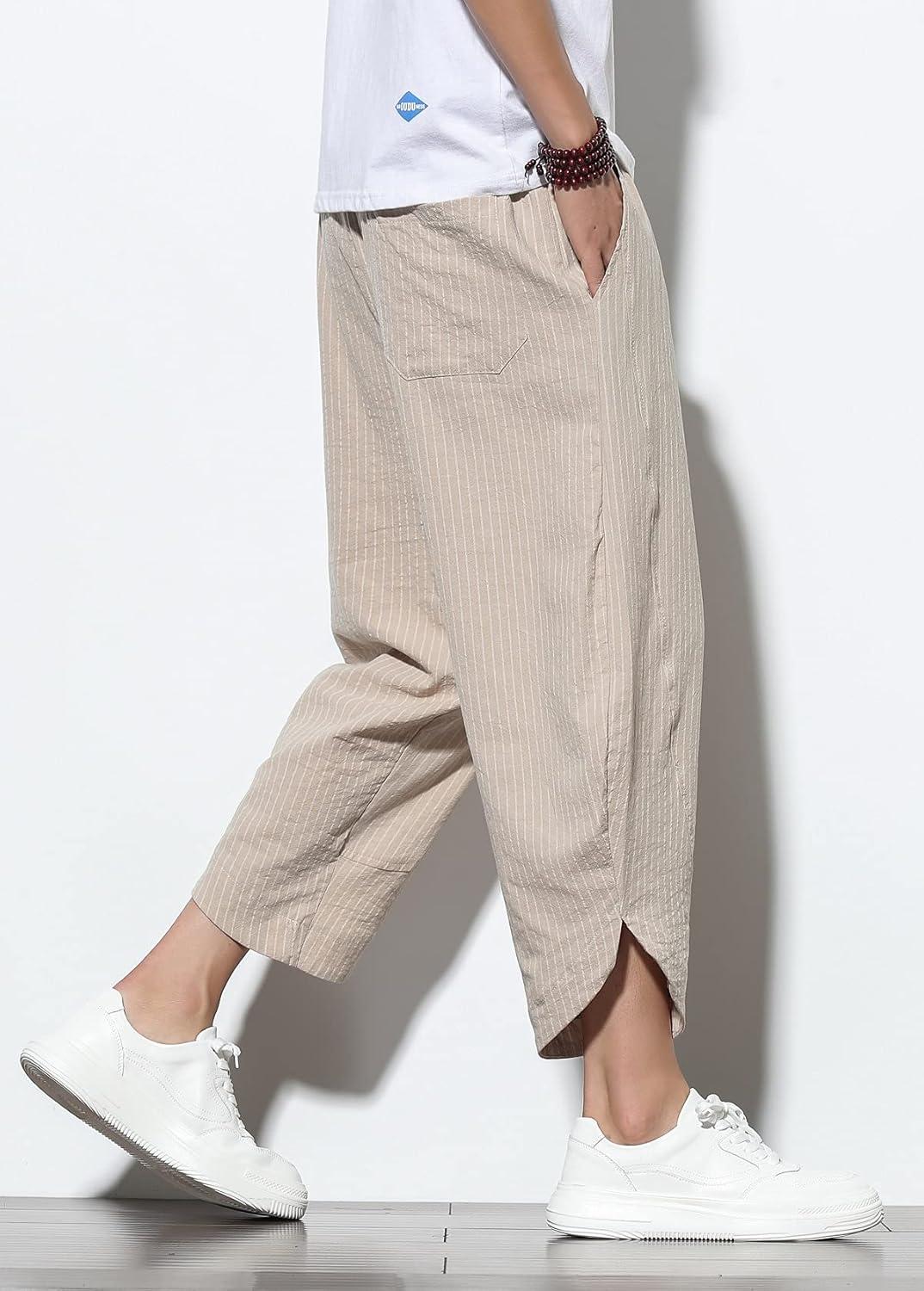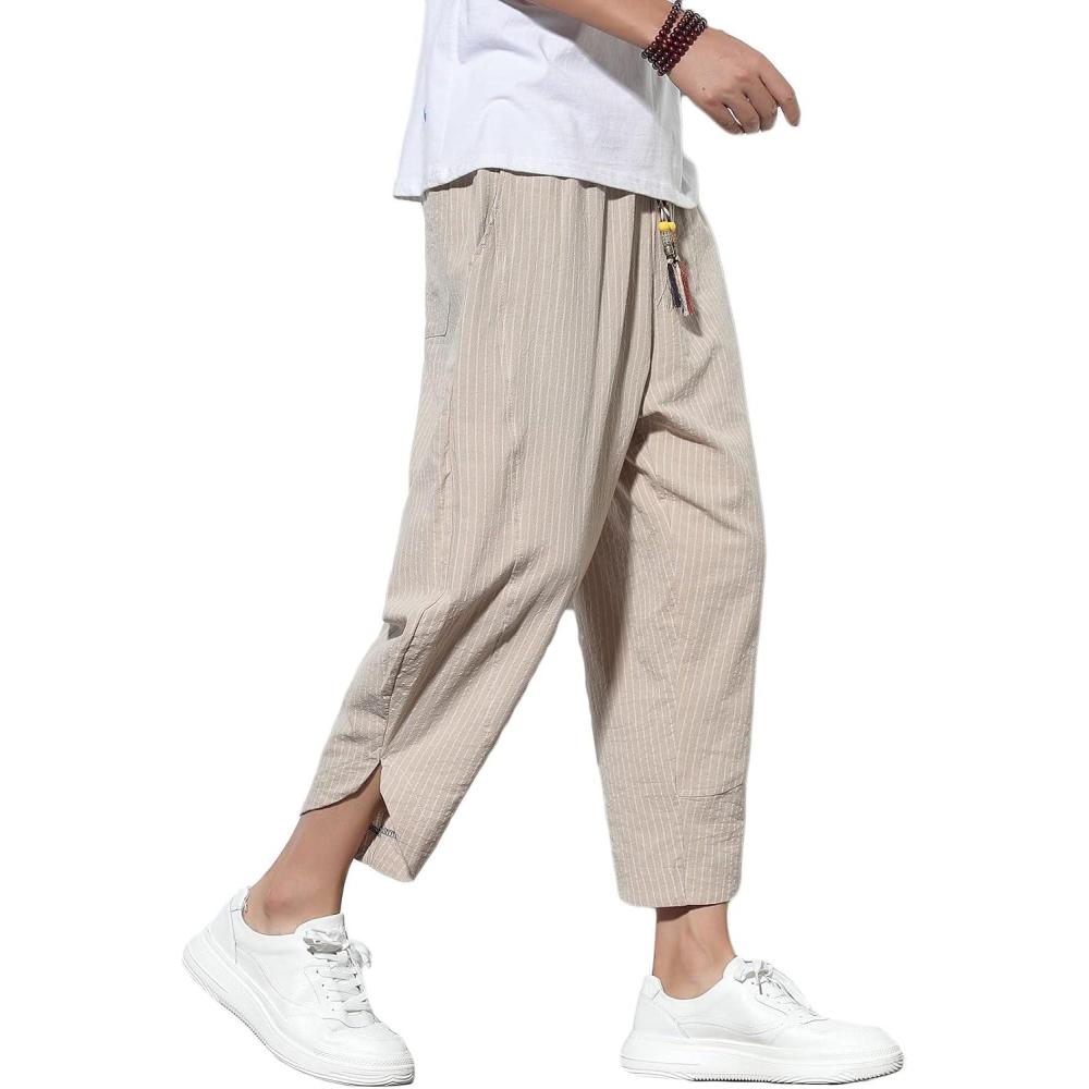 imageCHARTOU Mens Baggy Drawstring Waist WideLeg Loose Fit Lightweight Harem Crop PantsGrey