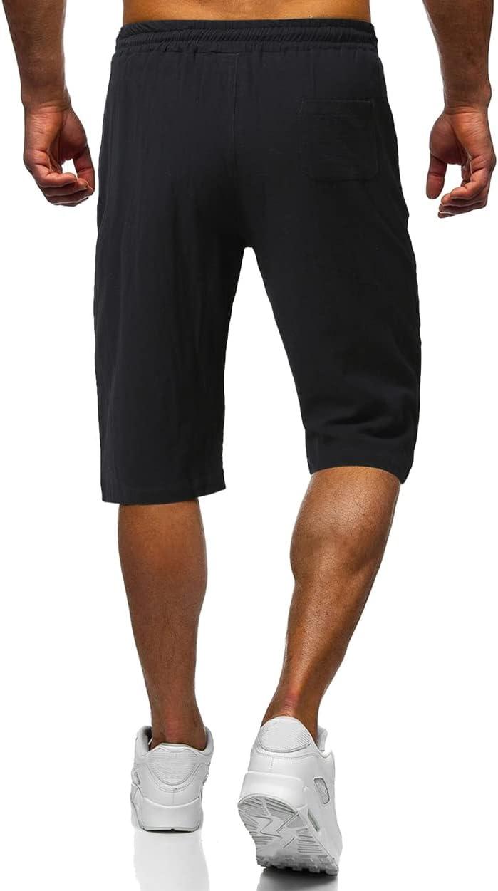 CHARTOU Men’s Casual Basic Elastic Waist Drawstring Pocket Athletic Bermuda Shorts(Black)