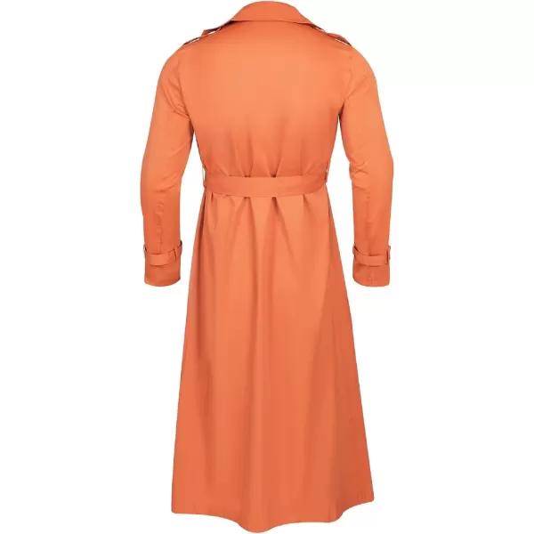 CHARTOU Men’s Lightweight Notched Double Breast Belt Long Trench Pea Coat Overcoat(Orange)