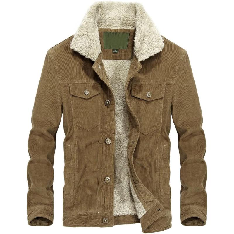 CHARTOU Men’s Vintage Button-Front Slim Fit Corduroy Denim Jacket(Khaki-fleece)