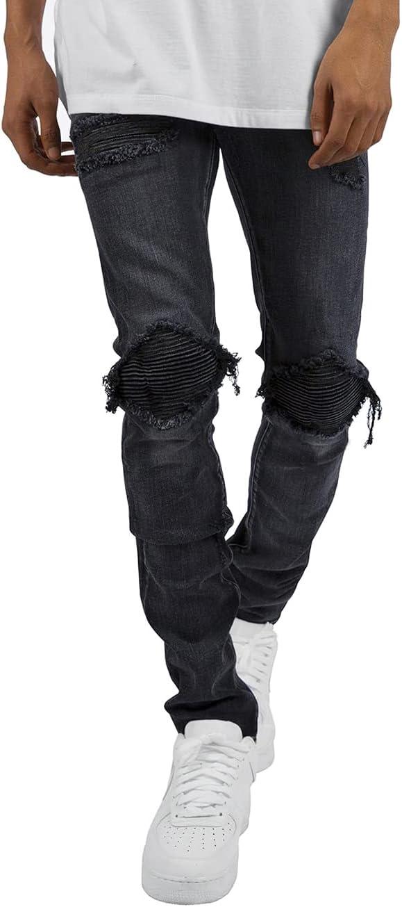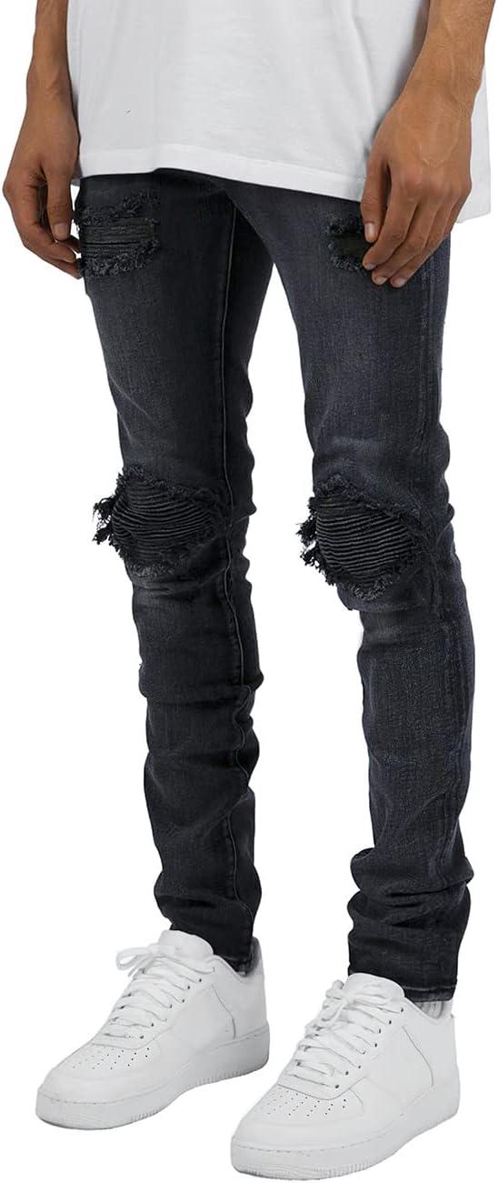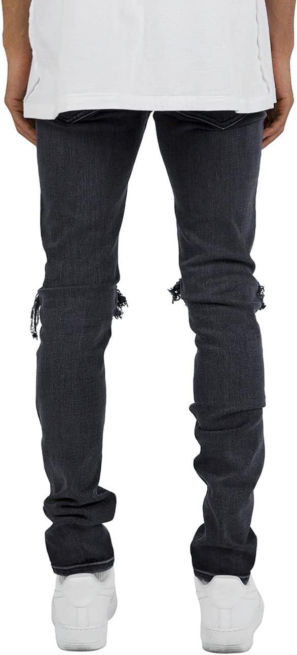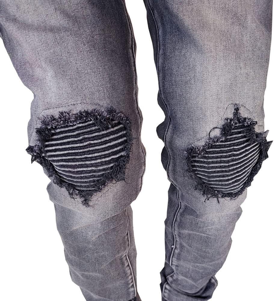 CHARTOU Men’s Vintage Destroyed Holes Patchwork Ripped Distressed Skinny Tapered Leg Jeans(Black B)