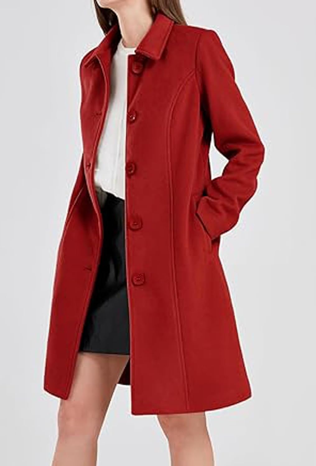 CHARTOU Slim Wool Coat for Women Trenchcoat Peacoat Woolen Trench Coat Long Winter Coat Single Breasted Overcoat(Red)