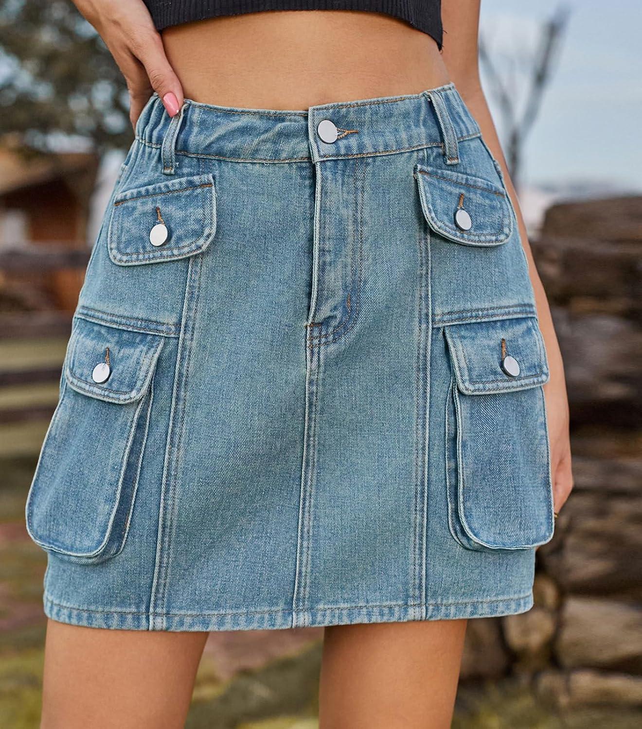 CHARTOU Summer Jean Skirt for Women Denim Mini Skirt Y2k Elastic High Waist Cargo Skirt Short Skirt Utility Pocket Stretchy elastic high waisted skirt/ Summer casual denim mini skirt y2k jean skirt Retro vintage and casual skirt/ Cargo skirt with utility pockets 【Size Guide for DENIM JEAN SKIRT】—-XS=US 0-2, S=US 4-6, M=US 8-10, L=US 12-14, XL=US 16-18, XXL=US 20-22. Please refer to the body size chart in last picture before purchase. 【SELLING POINTS for JEAN SKIRT Y2K】—– Elastic waist back/ Zip front with 1 button/ Multi utility pockets/ Denim mini skirt jean skirt/ Patchwork skirt/ Flared denim skirt/ Packaged hip/ Blue jean skirt for women 【VERSATILE SHORT SKIRT】—- Weekend denim mini skirt Y2k cargo skirt, daily wear denim skirt summer jean skirts for women denim short skirts for women, streetwear women jean mini skirt utility skirt cute, holiday vacation high waisted skirt, night club high waist skirt with pockets, going out skirt spring denim flare skirt Women Denim Cargo Skirt Mini Low Waist Button Bodycon Y2K Flap Pockets Skirts