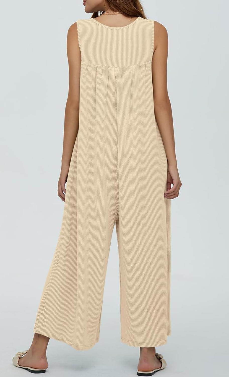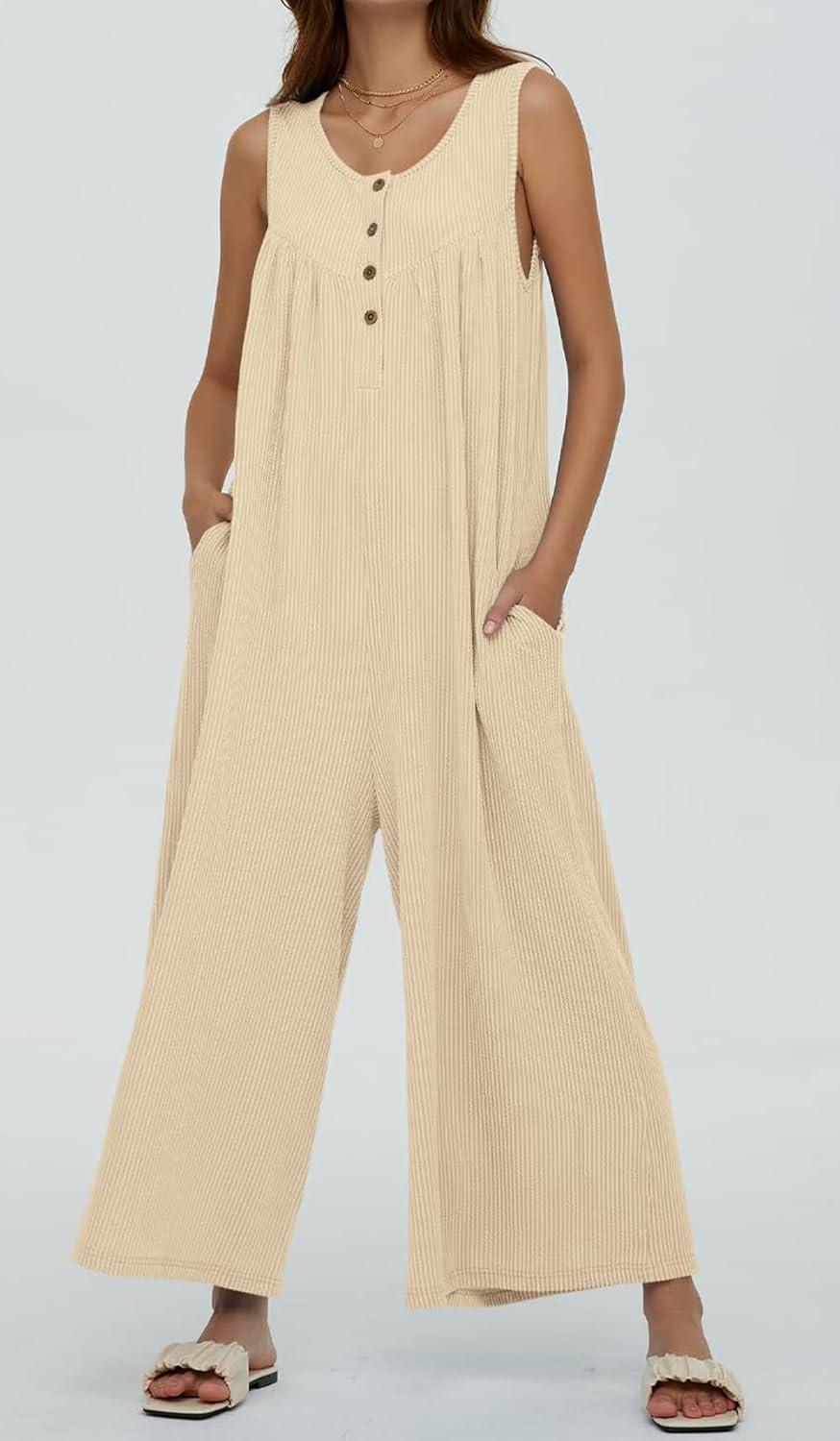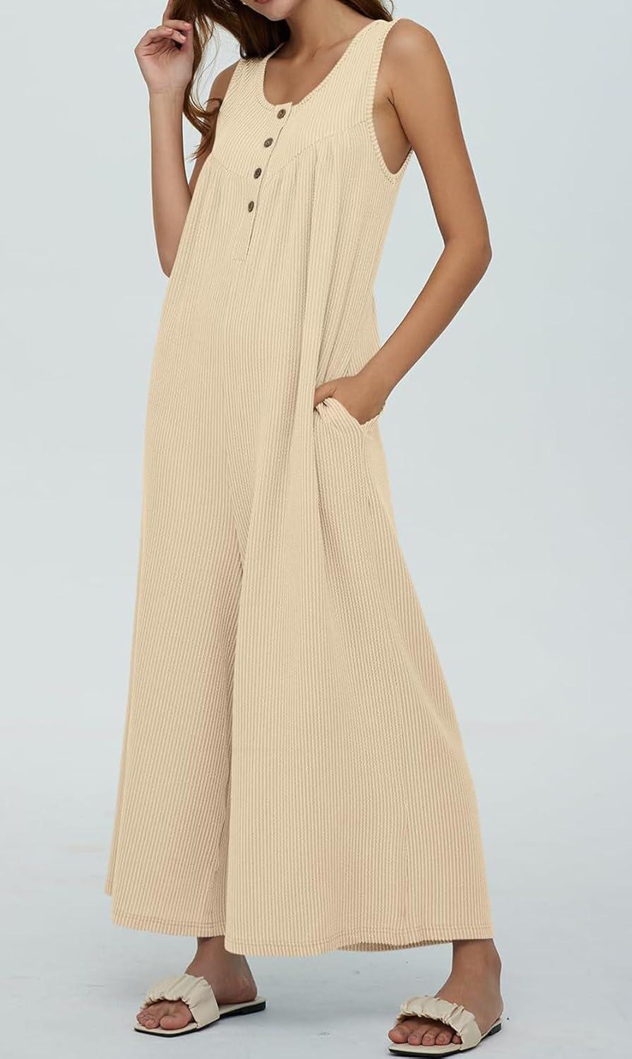 Get the CHARTOU Summer Striped Jumpsuit for Women Wide Leg Jumpsuit Sleeveless Long Romper Button Down Baggy Overalls Jumper(Apricot) you want at a discounted price during our markdown sale event.