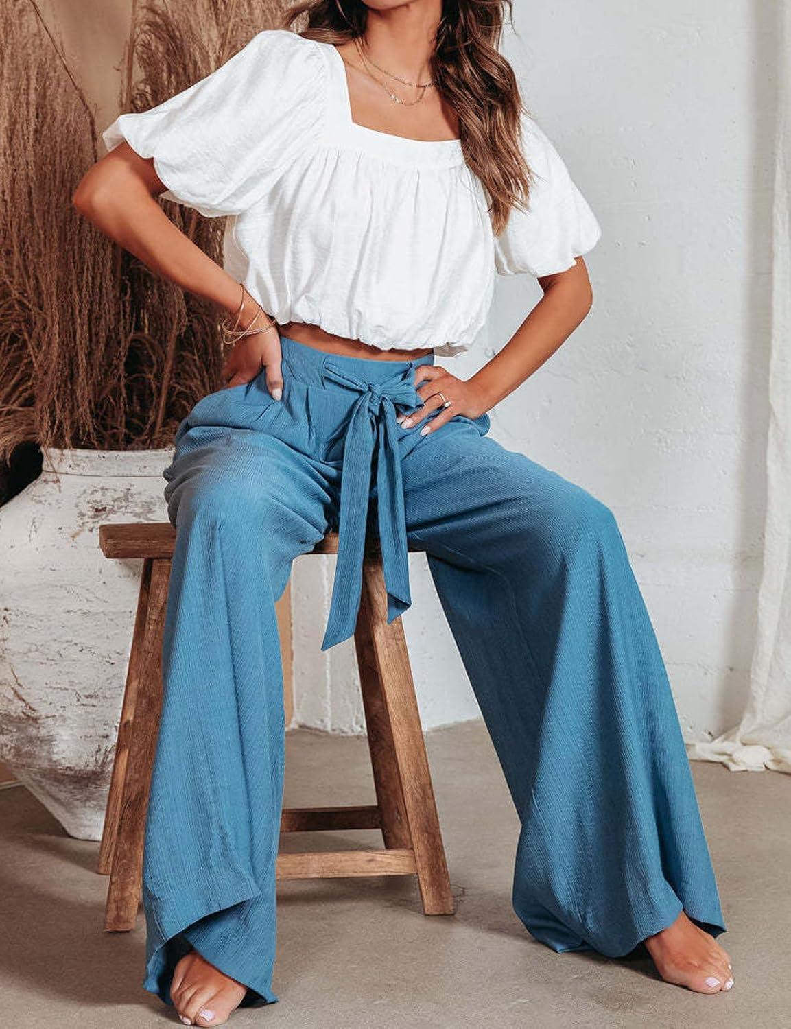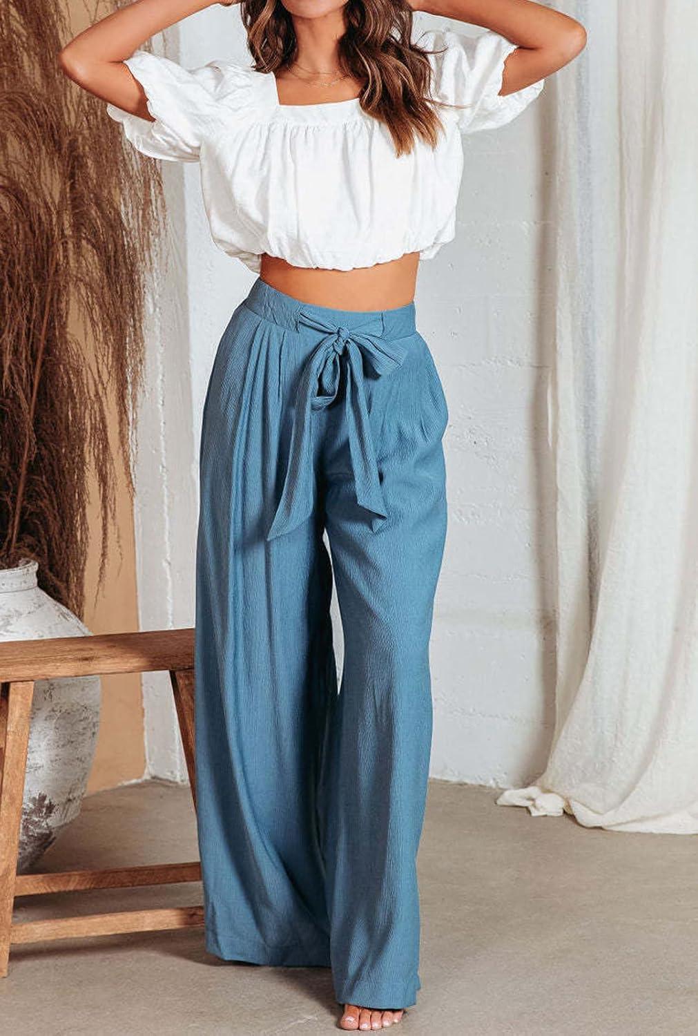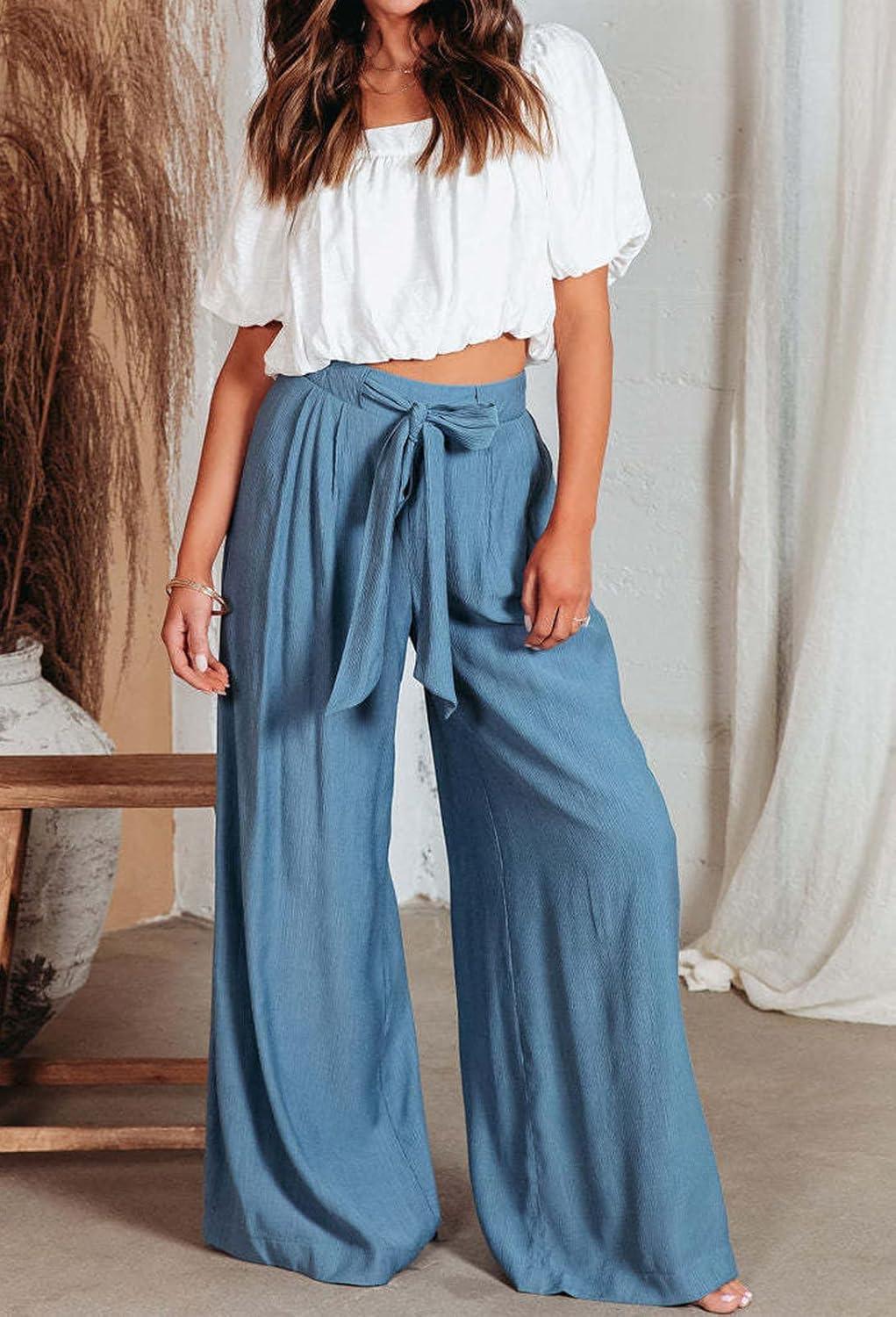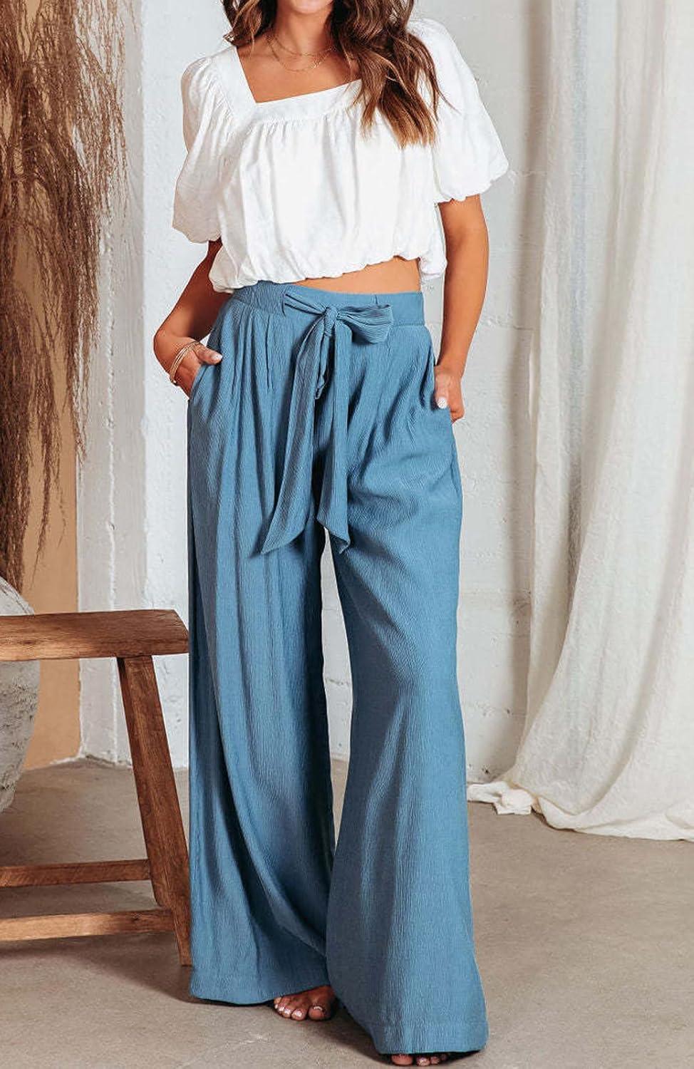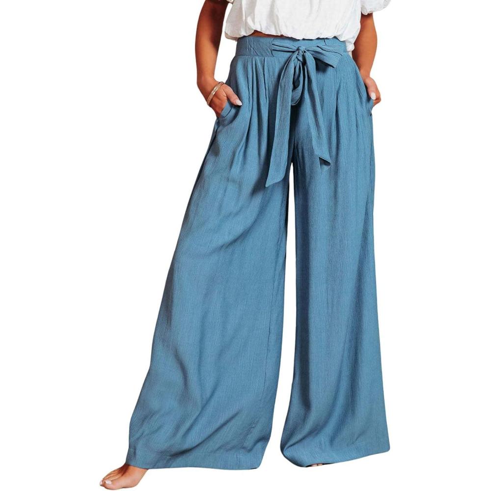 CHARTOU Summer Wide Leg Pants Womens Palazzo Pants Casual Textured Beach Flowy Pants Elastic Waist Pants with Belt High waisted wide leg pants for women lightweight summer pants Stretchy elastic waist pants with tie belt/ Thin lightweight casual pants 【Size Guide for PALAZZO PANTS】—-XS=US 0-2, S=US 4-6, M=US 8-10, L=US 12-14, XL=US 16-18, XXL=US 20-22. Please refer to the body size chart in last picture before purchase. 【SELLING POINTS for FLOWY PANTS】—– Elastic high waist with drawstring pants/ 2 Side pockets/ Wide leg sweatpants palazzo pants for women/ Full length slacks/ Solid color- blue pants women, womens khaki pants, off white cotton pants women 【VERSATILE WIDE LEG PANTS】—- Weekend palazzo pants women slacks wide legged pants cute work pants cargo pants, daily high waisted wide leg pants summer pants wide leg sweatpants flare pants, streetwear loose flowy pants women culottes wide leg trousers casual baggy pants lightweight summer pants, casual pants drawstring pants palazzo pants bell bottom pants, beach cover up pants elephant pants, maternity pants, wide leg yoga pants gauze cotton pants elastic waist wide leg lounge pants Women Linen Palazzo Pants Summer Boho Wide Leg High Waist Casual Lounge Pant Trousers with Pockets Women's Pleated Wide Leg Palazzo Pants with Drawstring Women's Boho High Waisted Palazzo Pants Summer Beach Wide Leg Flowy Pants Women High Waist Casual Wide Leg Long Palazzo Pants Trousers Womens Solid Rib Knit Wide Leg Pants Elastic Waist Flowy Sweater Pants Women Summer High Waisted Cotton Linen Palazzo Pants Wide Leg Long Lounge Pant Trousers with Pocket Women Casual Wide Leg Pants High Waisted Business Work Casual Pants Loose Flowy Beach Palazzo Pants