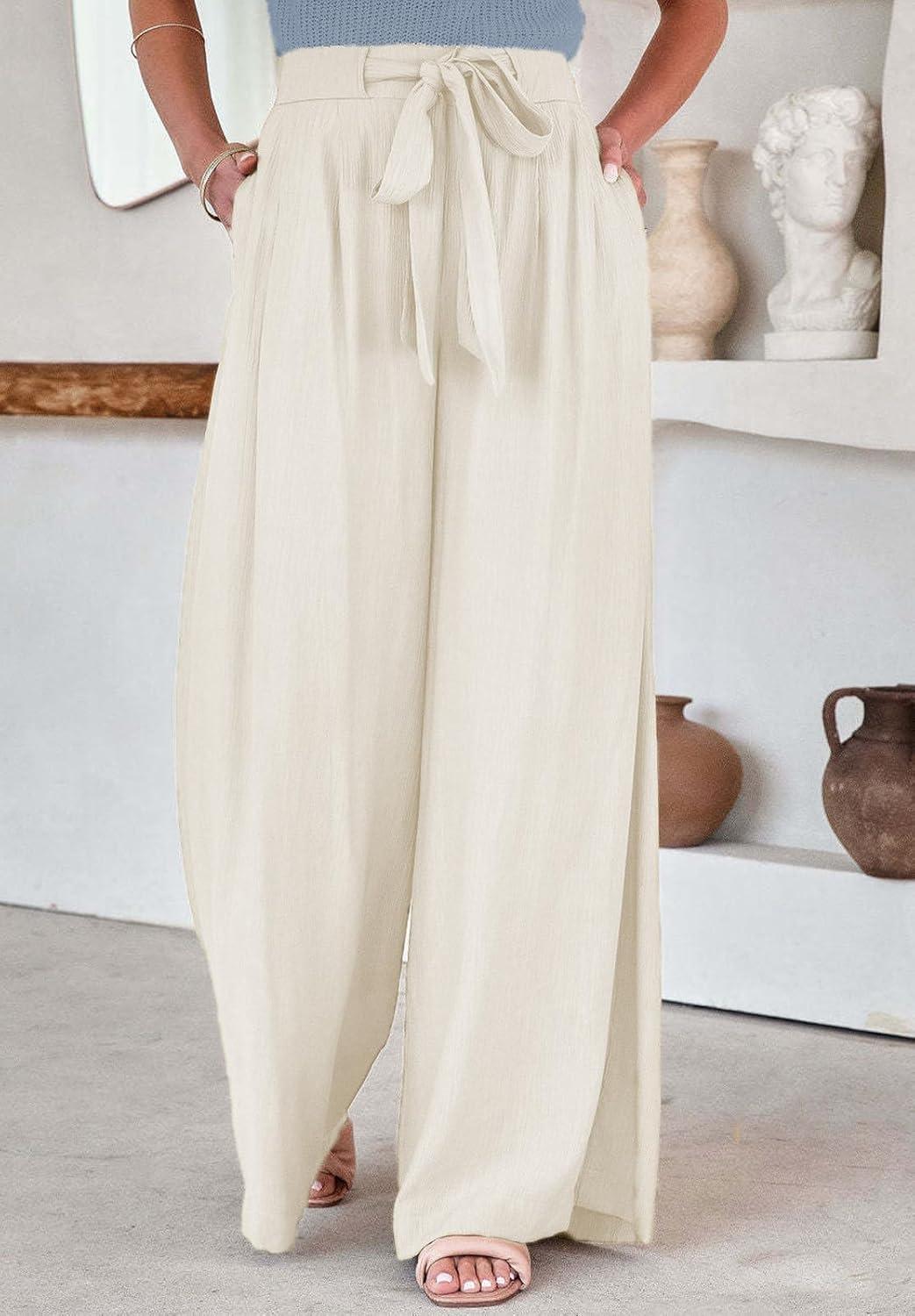 CHARTOU Summer Wide Leg Pants Womens Palazzo Pants Casual Textured Beach Flowy Pants Elastic Waist Pants with Belt High waisted wide leg pants for women lightweight summer pants Stretchy elastic waist pants with tie belt/ Thin lightweight casual pants 【Size Guide for PALAZZO PANTS】—-XS=US 0-2, S=US 4-6, M=US 8-10, L=US 12-14, XL=US 16-18, XXL=US 20-22. Please refer to the body size chart in last picture before purchase. 【SELLING POINTS for FLOWY PANTS】—– Elastic high waist with drawstring pants/ 2 Side pockets/ Wide leg sweatpants palazzo pants for women/ Full length slacks/ Solid color- blue pants women, womens khaki pants, off white cotton pants women 【VERSATILE WIDE LEG PANTS】—- Weekend palazzo pants women slacks wide legged pants cute work pants cargo pants, daily high waisted wide leg pants summer pants wide leg sweatpants flare pants, streetwear loose flowy pants women culottes wide leg trousers casual baggy pants lightweight summer pants, casual pants drawstring pants palazzo pants bell bottom pants, beach cover up pants elephant pants, maternity pants, wide leg yoga pants gauze cotton pants elastic waist wide leg lounge pants Women Linen Palazzo Pants Summer Boho Wide Leg High Waist Casual Lounge Pant Trousers with Pockets Women's Pleated Wide Leg Palazzo Pants with Drawstring Women's Boho High Waisted Palazzo Pants Summer Beach Wide Leg Flowy Pants Women High Waist Casual Wide Leg Long Palazzo Pants Trousers Womens Solid Rib Knit Wide Leg Pants Elastic Waist Flowy Sweater Pants Women Summer High Waisted Cotton Linen Palazzo Pants Wide Leg Long Lounge Pant Trousers with Pocket Women Casual Wide Leg Pants High Waisted Business Work Casual Pants Loose Flowy Beach Palazzo Pants