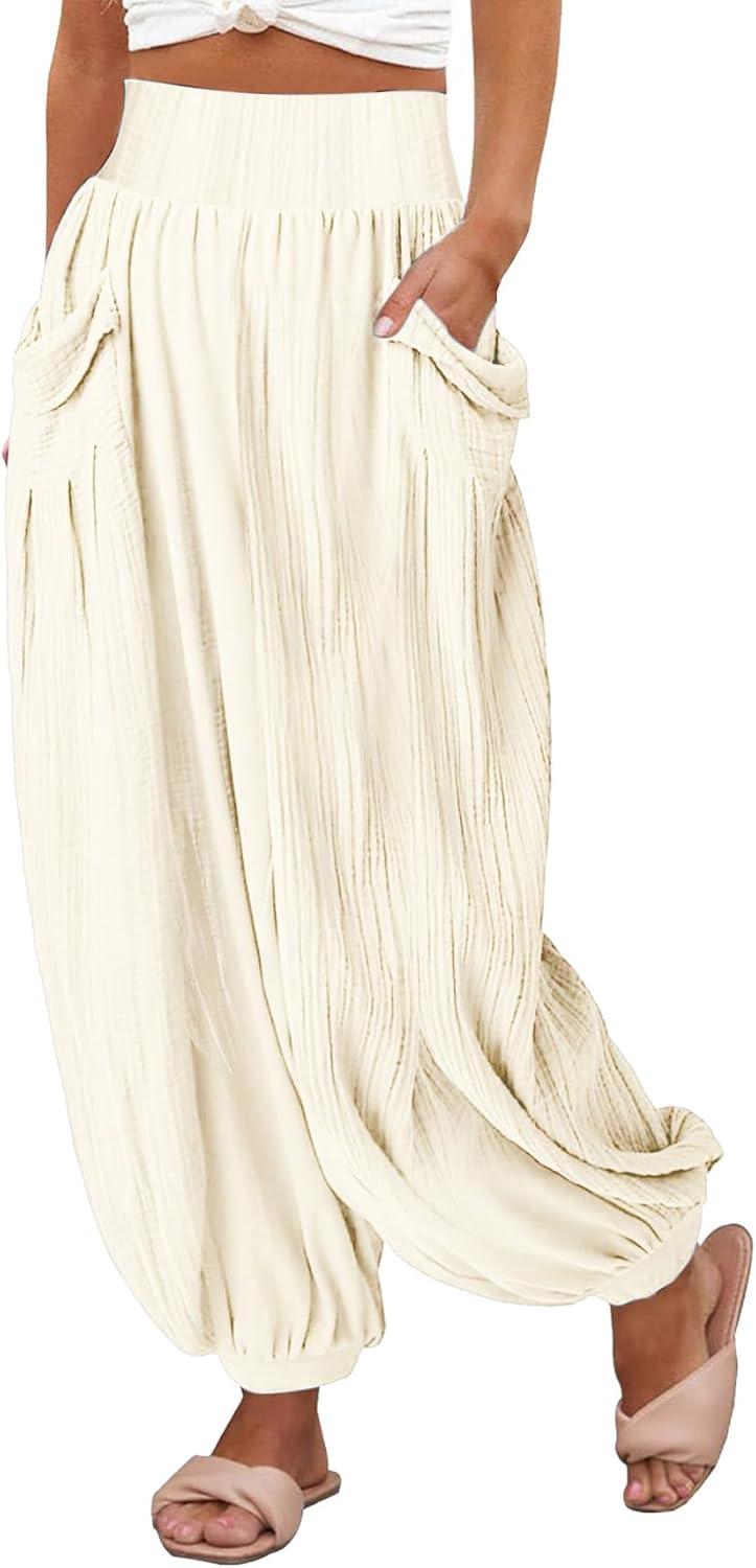 CHARTOU Summer Wide Leg Sweatpants Women Palazzo Pants Loose Elastic Waist Lounge Slacks Beach Pants with pockets Lightweight and thin gauze pants summer pants Stretchy elastic waist/ Pull on style 【Size Guide for PALAZZO PANTS】—-XS=US 0-2, S=US 4-6, M=US 8-10, L=US 12-14, XL=US 16-18, XXL=US 20-22. Please refer to the body size chart in last picture before purchase. 【SELLING POINTS for WIDE LEG PANTS】—– Stretchy elastic waist/ Wide leg pants with lantern bottom/ Straight leg palazzo pantss for women/ gauze pants flowy pants style/ 2 Side pockets/ Harem pants/ Modest casual pants- womens khaki pants, white pants women, black wide leg pants for women, green pants, white cargo pants slacks 【VERSATILE FLOWY PANTS】—- Weekend wide leg sweatpants women gauze pants for women casual summer pants women Boho slacks for women, daily wear palazzo pants for women casual wide legged pants, streetwear straight leg sweatpants for women flowy pants for women beach pants, holiday vacation wide leg pants linen pants women, night club flowy summer pants beach cover up pants, lightweight summer pants womens joggers with pockets