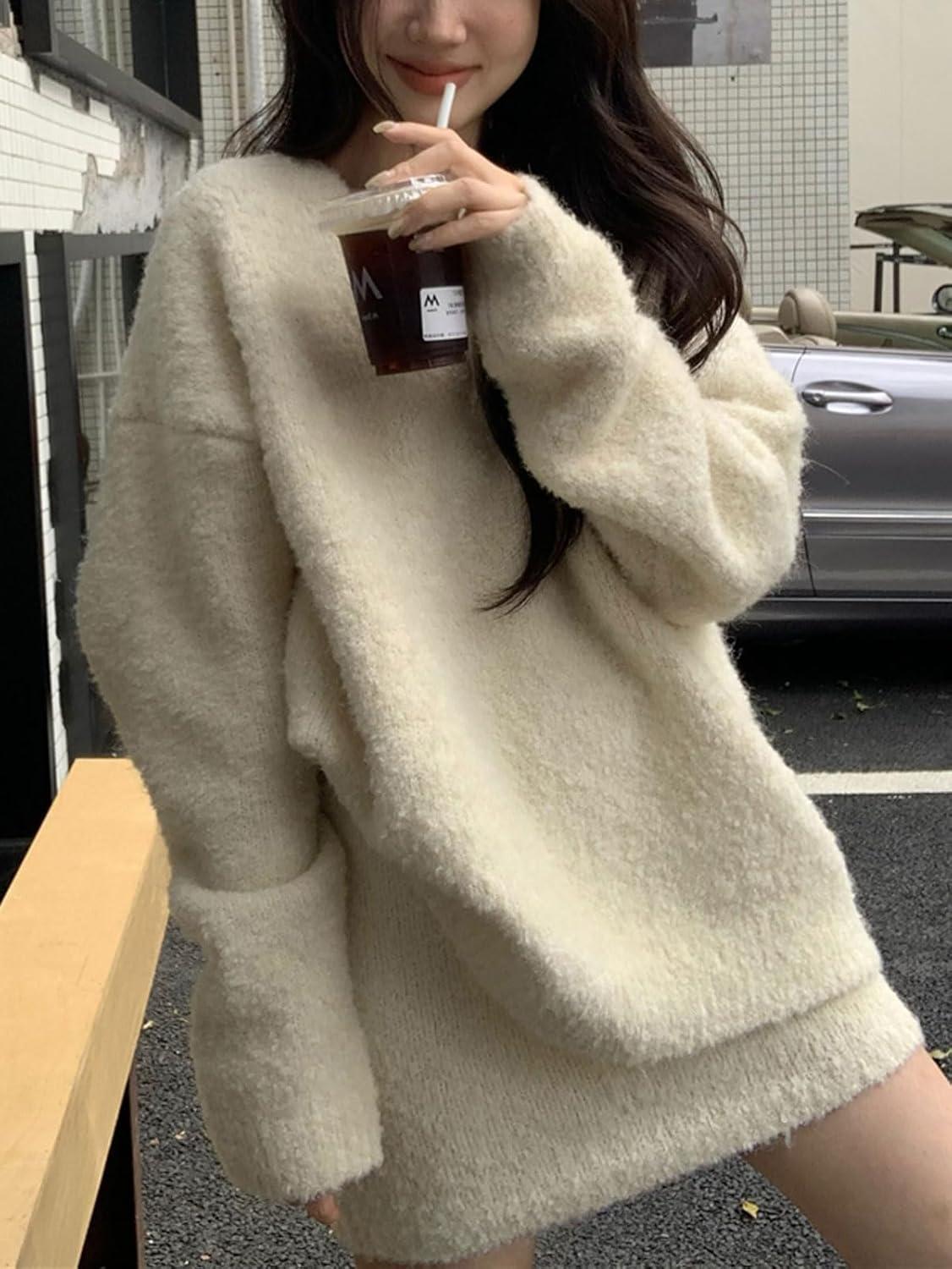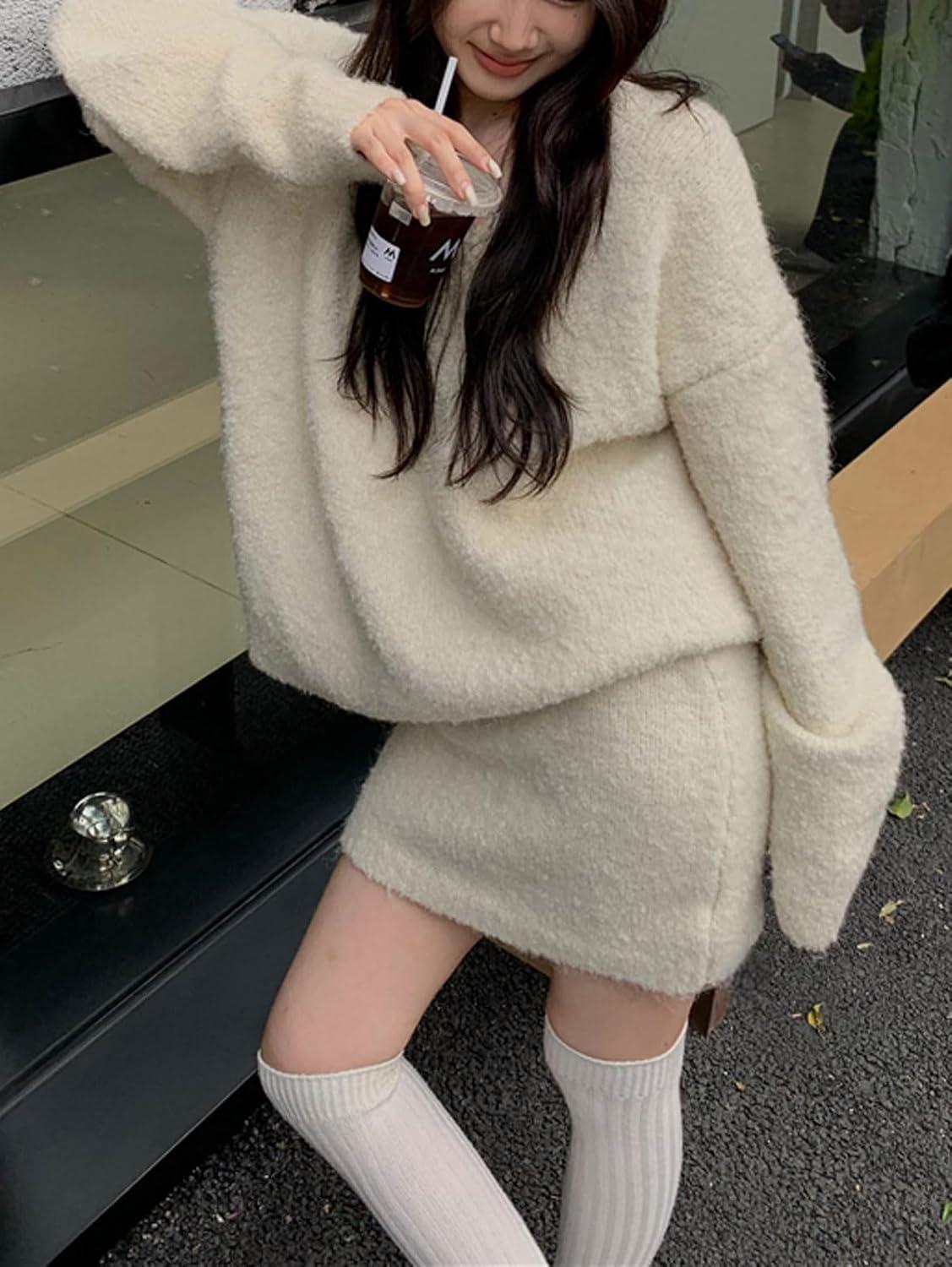 CHARTOU V Neck Knitted Sweater Skirt Sets Women 2 Piece Outfits Fuzzy Long Sleeve Pullover A Line Mini Skirt Women's fall jumper pencil skirts sets Design: Pull on closure, v neck, long sleeve, baggy sweater tops, knitted, oversized pullovers, high waist skirts, aline skirt, pencil skirt silhouette, showing womens sexy curve, fuzzy tunic top and mini skirt, solid color- black skirts, wine, khaki, beige Casual Loose Sweater Sets: Fall 2 piece sets for women loose fit lounge pajamas/ Soft knit skirts sets womens two pieces outfits fall/ Casual furry long sleeve pullover sweater sets for women going out tops jumper/ Shaggy knitwear v-neck sweaters for women trendy/ Slouchy drop shoulder jumper mini skirt sets/ A line pencil short skirts winter knitwear Occasion: Casual, dating, shopping, festive, birthday, party, outdoor activities, weekends, lounge, travel, etc. Great layer with pea coat or trench coat for going out in fall and winter. Perfect to pair with high boots, canvas shoes, sneakers Winter casual long sleeve knitted sweater skirt sets womens 2 pieces outfits fall loose fit v neck oversized sweater jumper aline cropped wrap skirts sets for women dressy short party pencil skirt knit high waisted skirts black