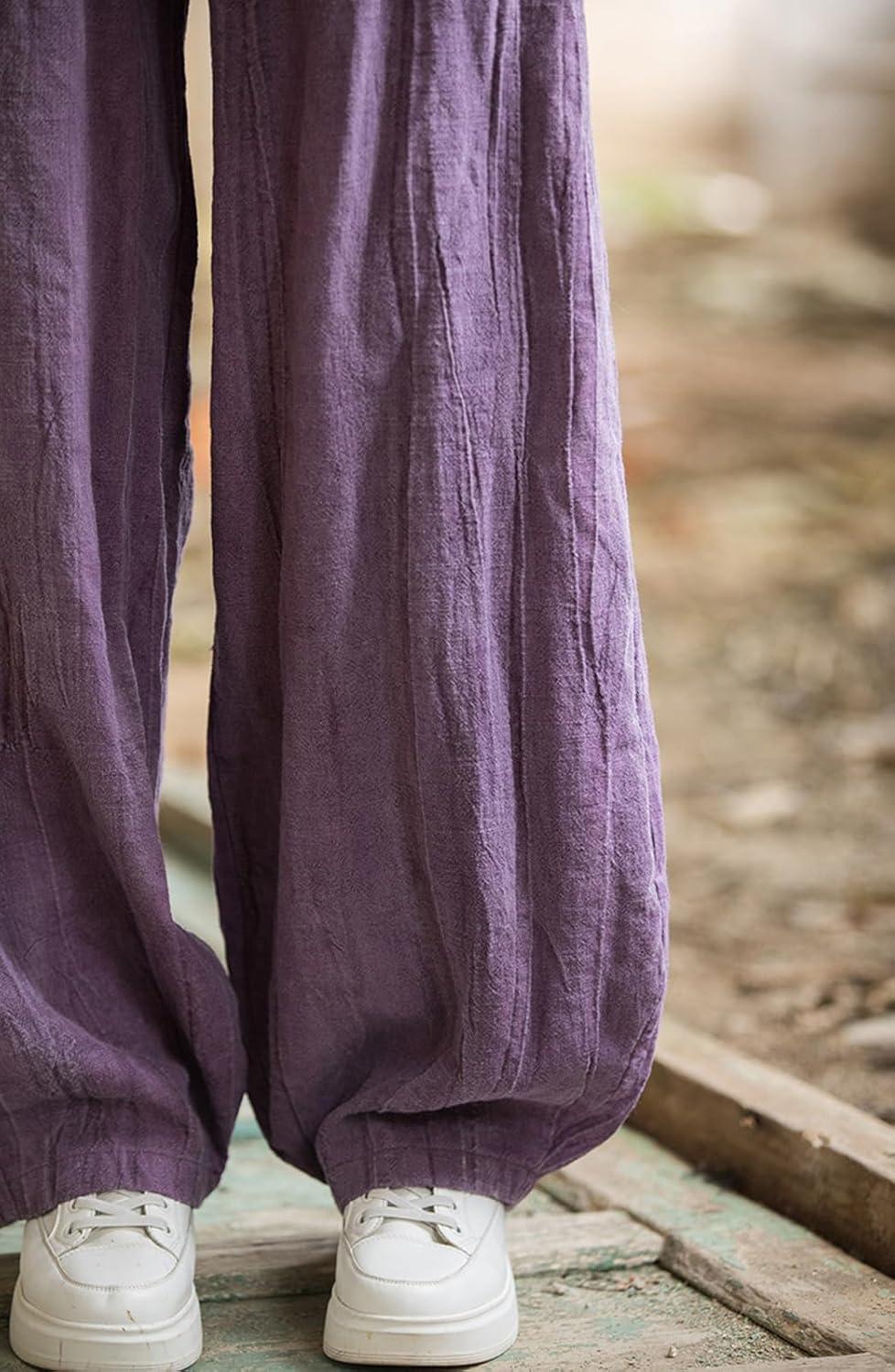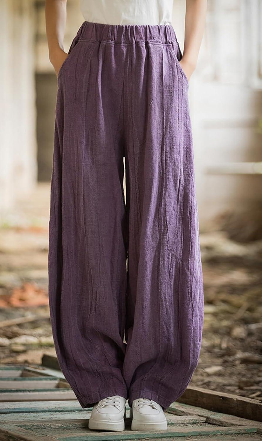 CHARTOU Vintage Cotton Linen Pants Women Wide Leg Pants Palazzo Pants Summer Lantern Beach Pants(Purple)