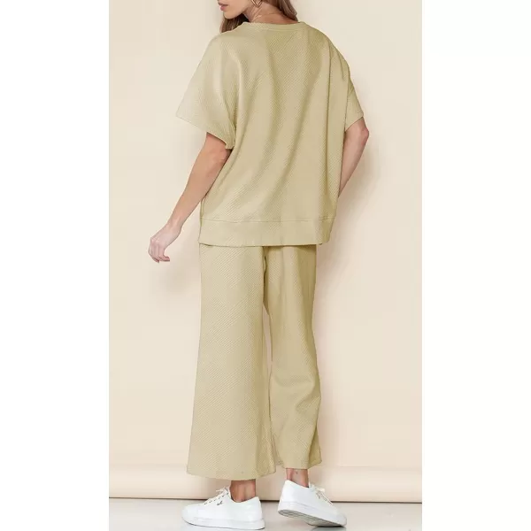 CHARTOU Women 2 Piece Loungewear Set Pants Short Sleeve Textured Tracksuit Two Piece Sweatsuit Workout Sweatpants(Deep Apricot)