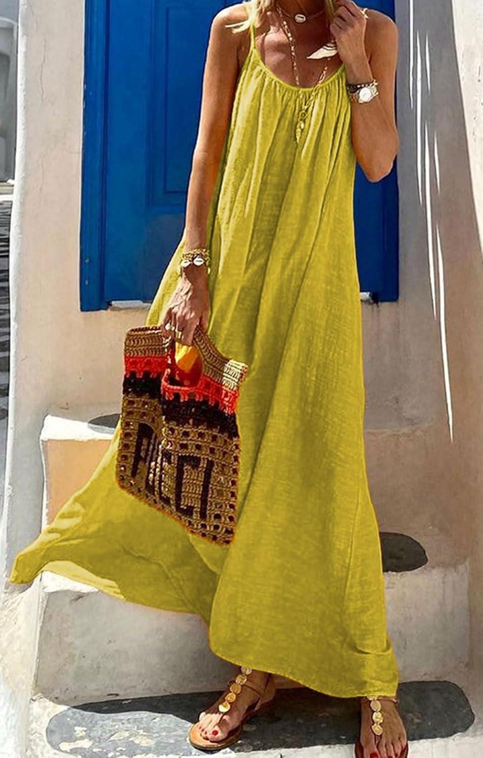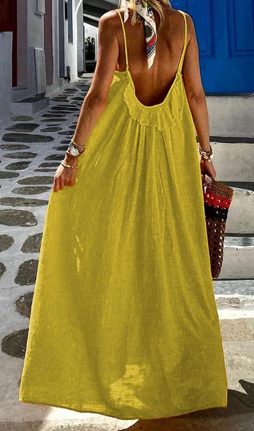 Open Back Long Dress/ Spaghetti Straps Sleeveless Summer Dress/ Causal Loose Fit Maxi Dress/ Beach Vacation Long Dresses/ Comfy Cotton Linen Maxi Dress