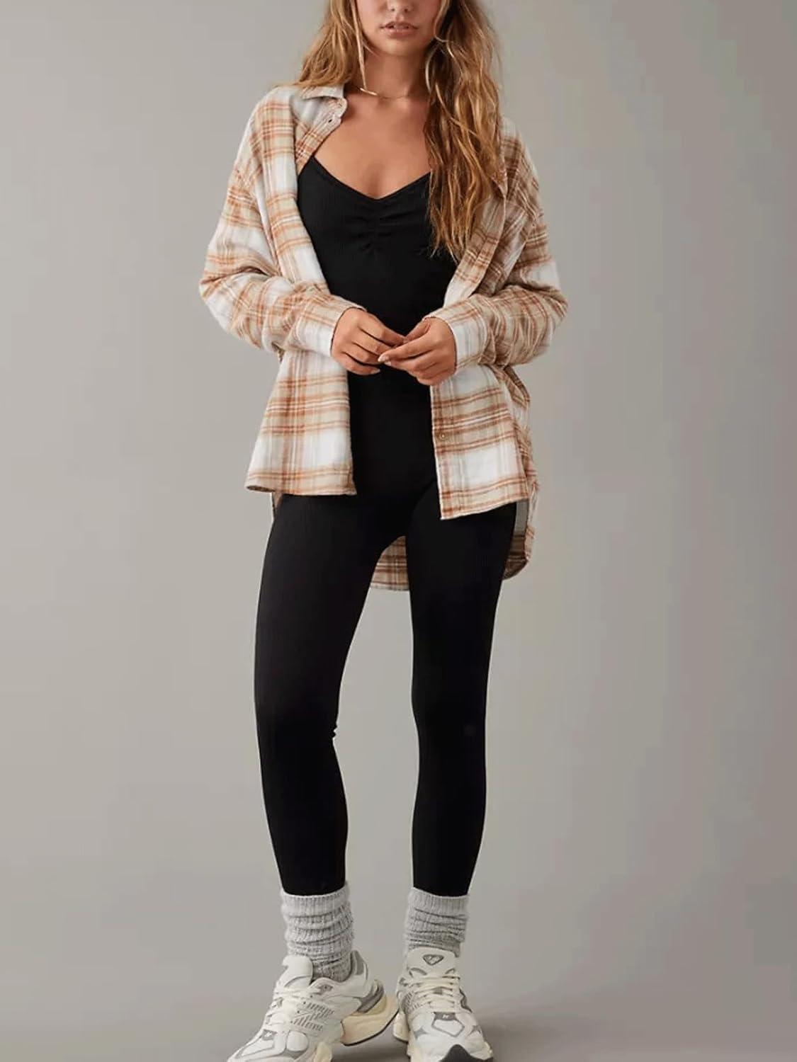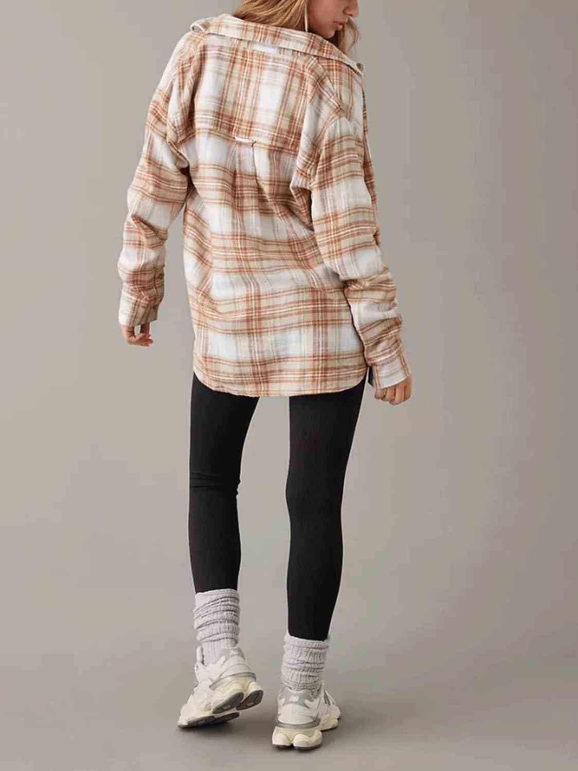 CHARTOU Women Baggy Plaid Blouses Button Down Long Sleeve Shirt Lightweight Cotton Collared Tops with Pocket
