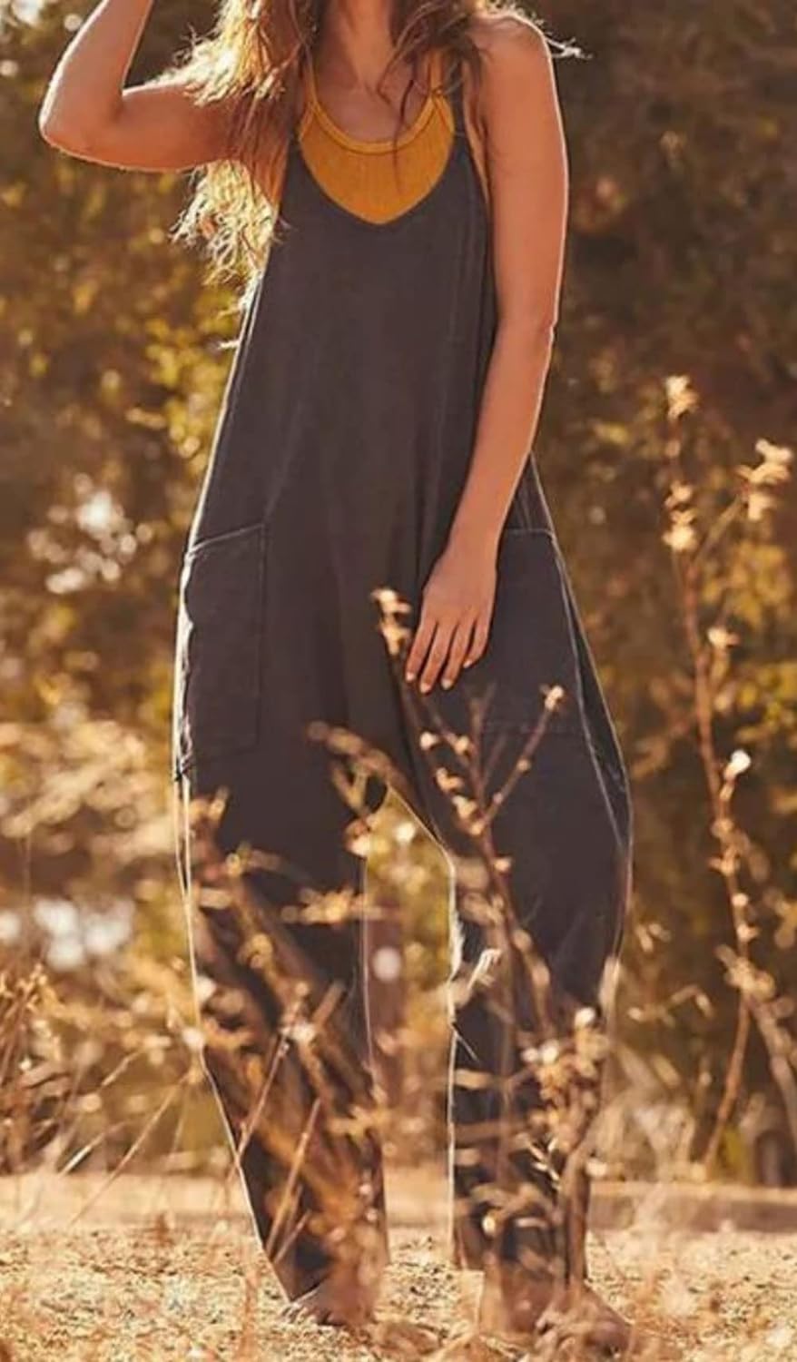 CHARTOU Women Baggy Sleeveless Slip Jumpsuit Loose Long Romper Harem Pants Overalls Dungaree Outfit Pocket