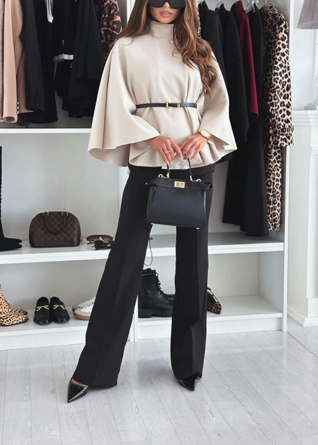 imageCHARTOU Women Batwing Sleeve Ponchos Pea Coat Stand Collar Capes Jacket Cloak Elegant Wool Coat with BeltBlack