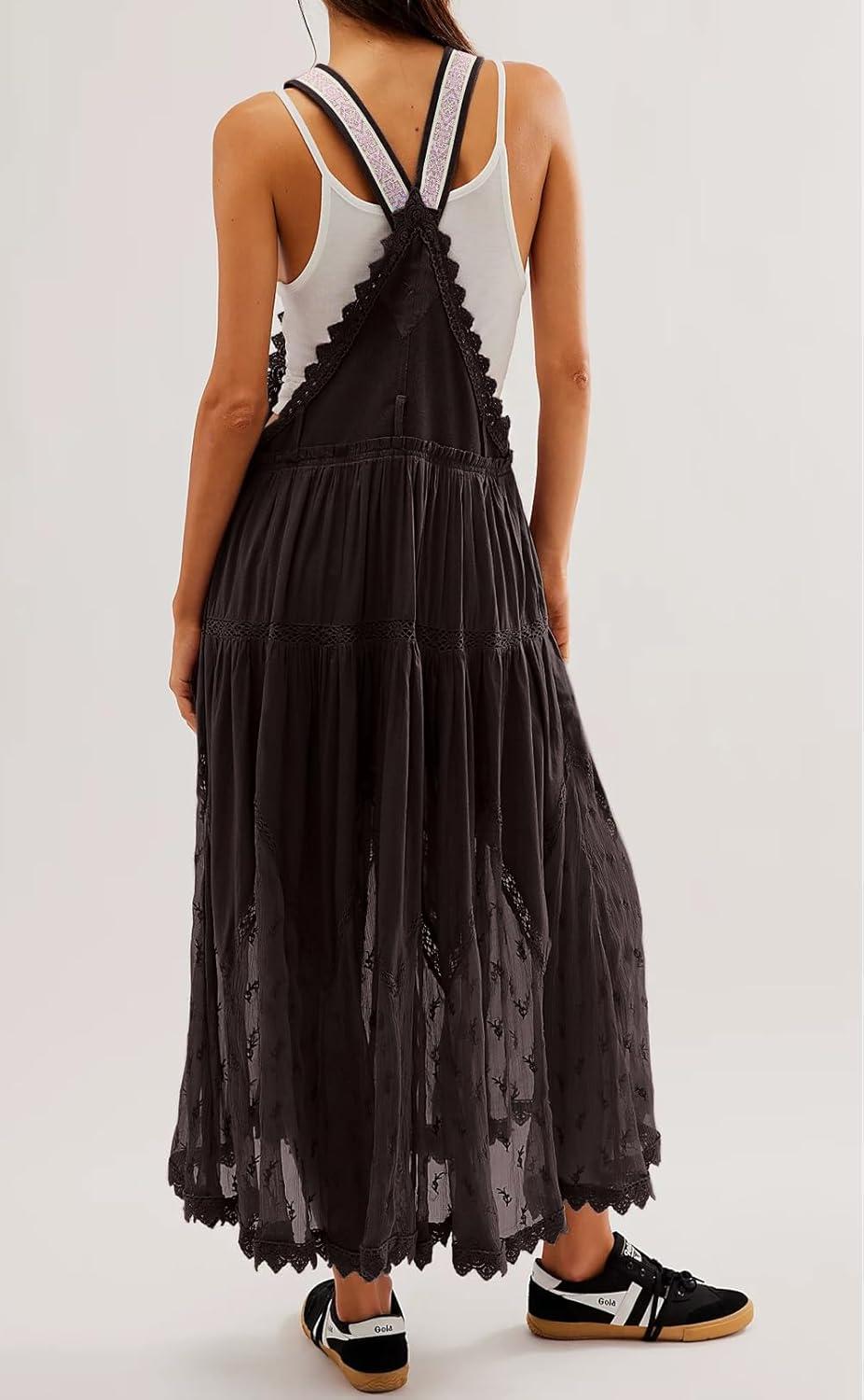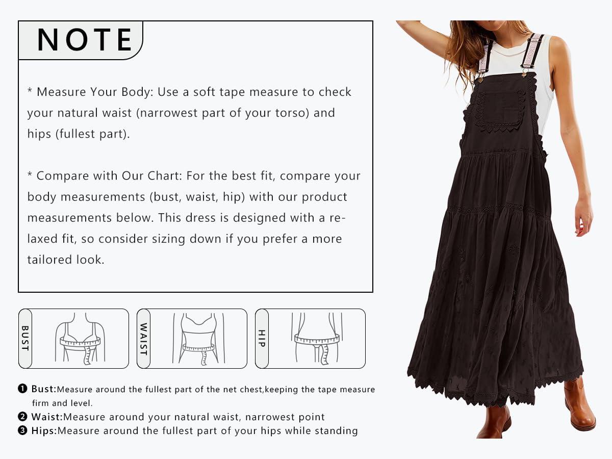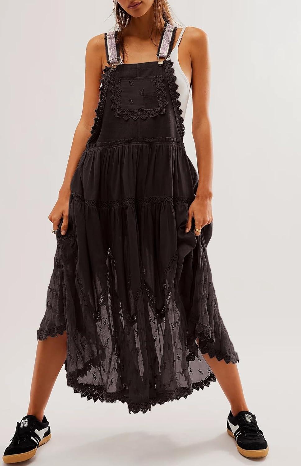 CHARTOU Women Bib Overall Dress Jumper Babydoll Pinafore Dress Embroidered Lace Maternity Straps Suspender Dress(Black)
