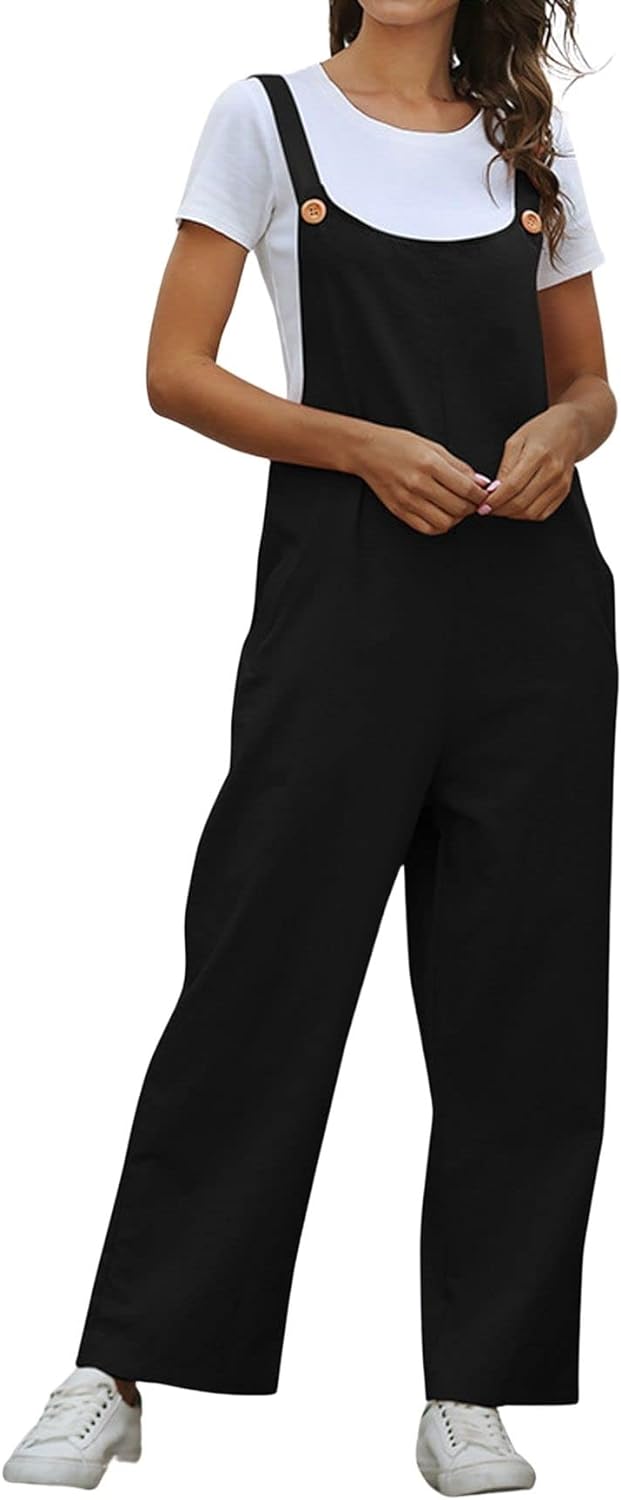 CHARTOU Women Bib Overalls Baggy Wide Leg Jumpsuit Casual Overalls Work Rompers Long Pants(Black)