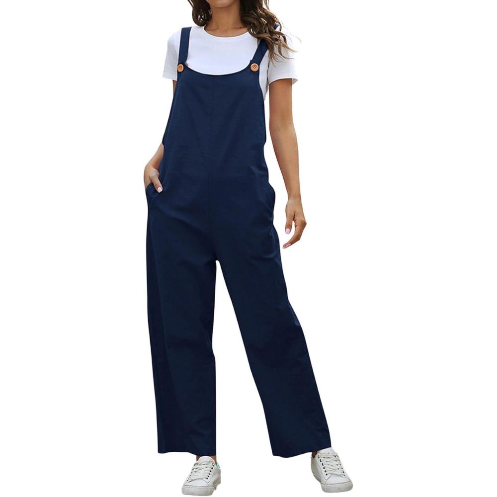CHARTOU Women Bib Overalls Baggy Wide Leg Jumpsuit Casual Overalls Work Rompers Long Pants(Navy)