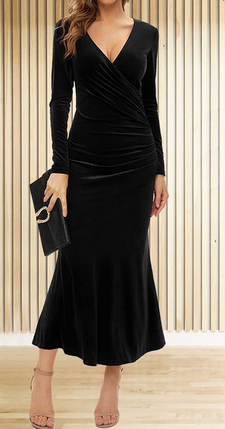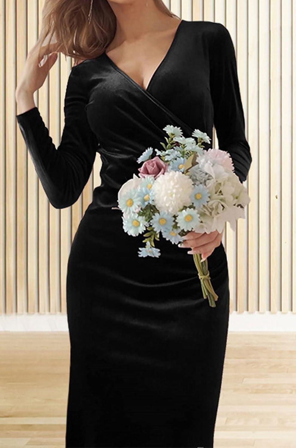 Women Bodycon Maxi Velvet Dress Long Sleeve Formal Dress Cocktail Wedding Quest Dress Wrap Evening Gown Bodycon long velvet dress/ micro stretch Skinny style, soft and breathable to wear in autumn and winter 【SELLING POINTS】—– Slim fit/ Wrap V neck/ Long sleeves/ Packaged hip/ High waisted/ Mermaid fishtail sheath gown/ Solid color- black dress, wine red, dark purple, green 【VERSATILE DRESS】—- Weekend long velvet dress, daily wear long formal dress for women , streetwear red dresses for women elegant prom gown, going out long formal dress for women sexy cocktail dresses for women evening party, holiday vacation velvet evening gown, night club party long sleeve evening gown long cocktail dress V neck wrap dress, business black formal dress sexy cocktail dresses for women evening party, long sleeve wedding guest dress floor length dress