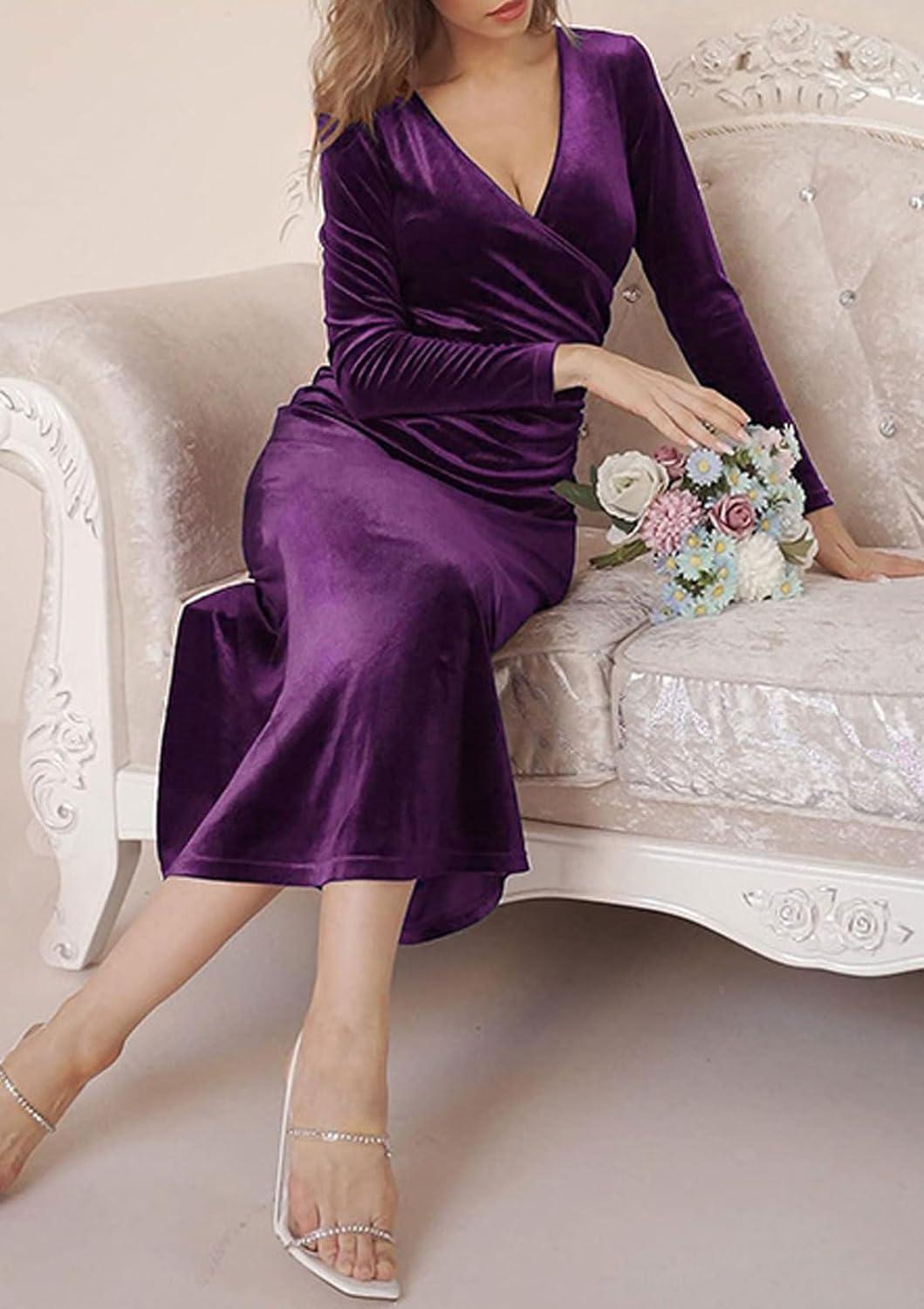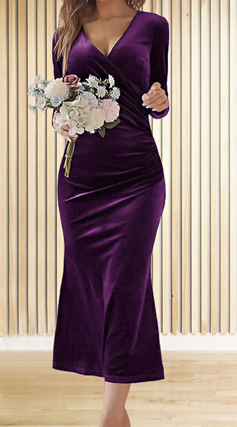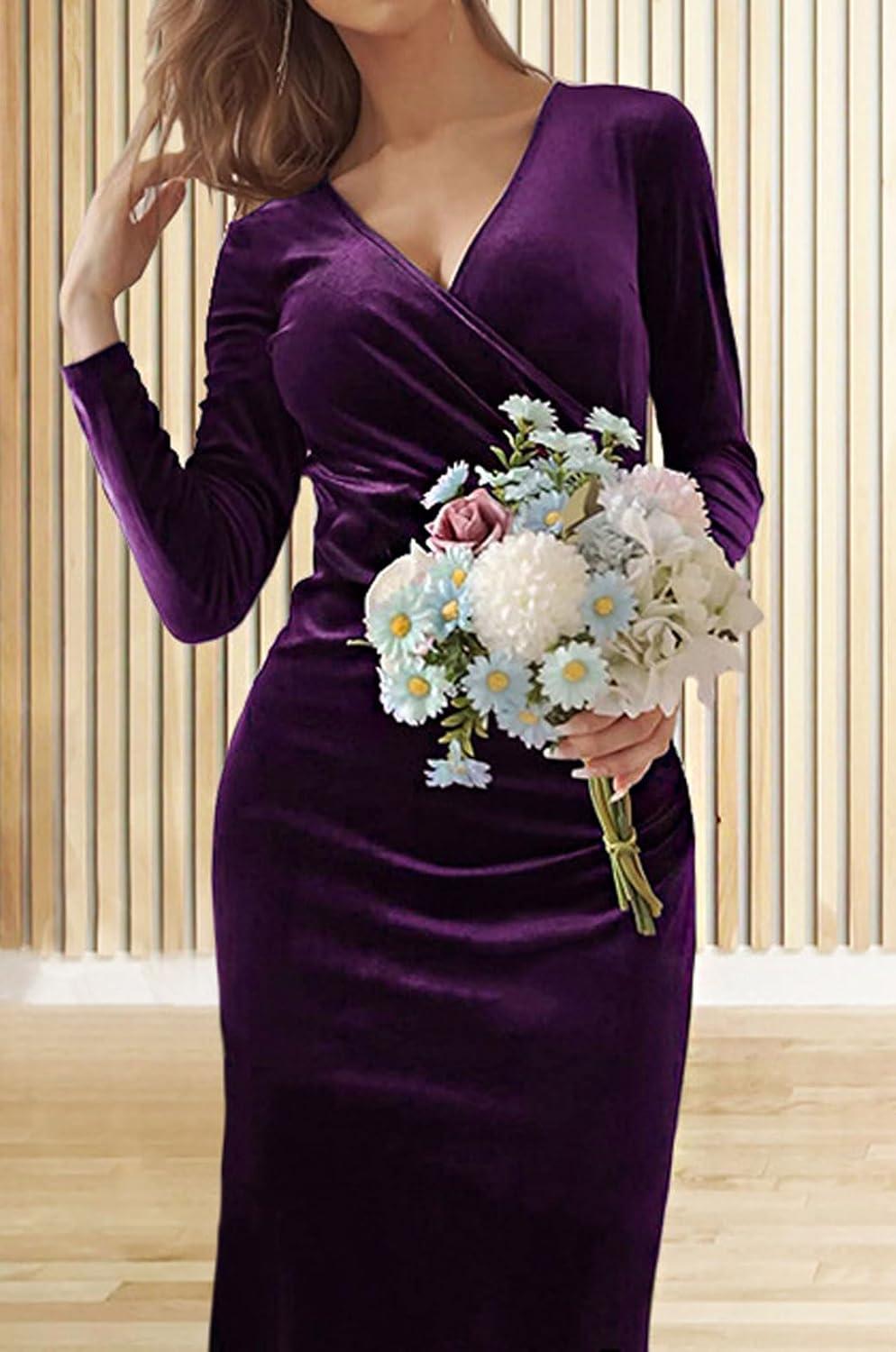 Women Bodycon Maxi Velvet Dress Long Sleeve Formal Dress Cocktail Wedding Quest Dress Wrap Evening Gown Bodycon long velvet dress/ micro stretch Skinny style, soft and breathable to wear in autumn and winter 【SELLING POINTS】—– Slim fit/ Wrap V neck/ Long sleeves/ Packaged hip/ High waisted/ Mermaid fishtail sheath gown/ Solid color- black dress, wine red, dark purple, green 【VERSATILE DRESS】—- Weekend long velvet dress, daily wear long formal dress for women , streetwear red dresses for women elegant prom gown, going out long formal dress for women sexy cocktail dresses for women evening party, holiday vacation velvet evening gown, night club party long sleeve evening gown long cocktail dress V neck wrap dress, business black formal dress sexy cocktail dresses for women evening party, long sleeve wedding guest dress floor length dress