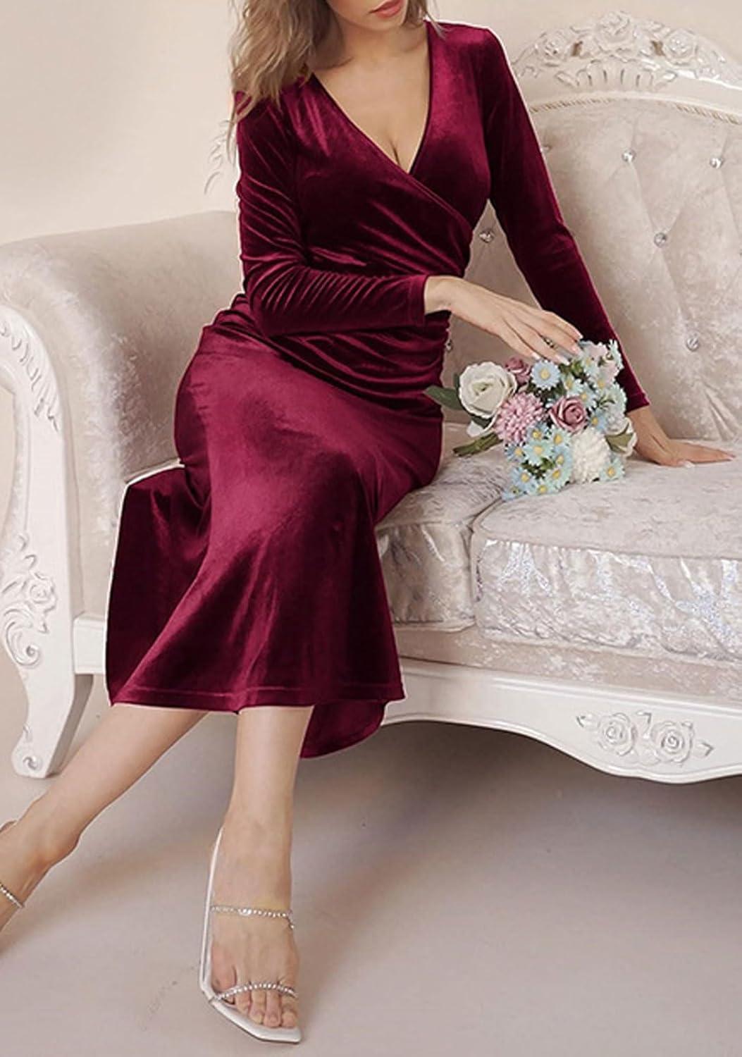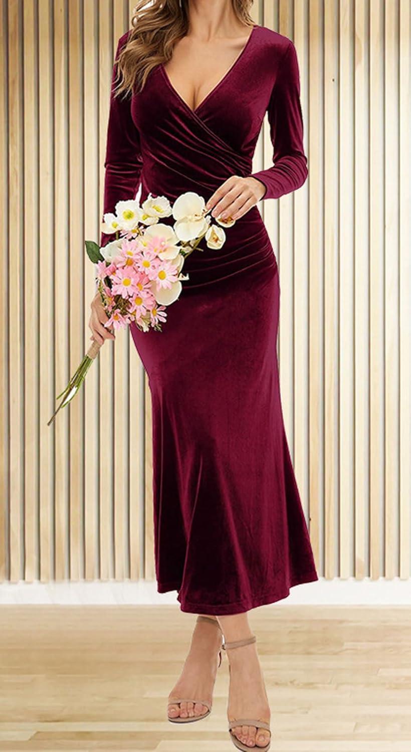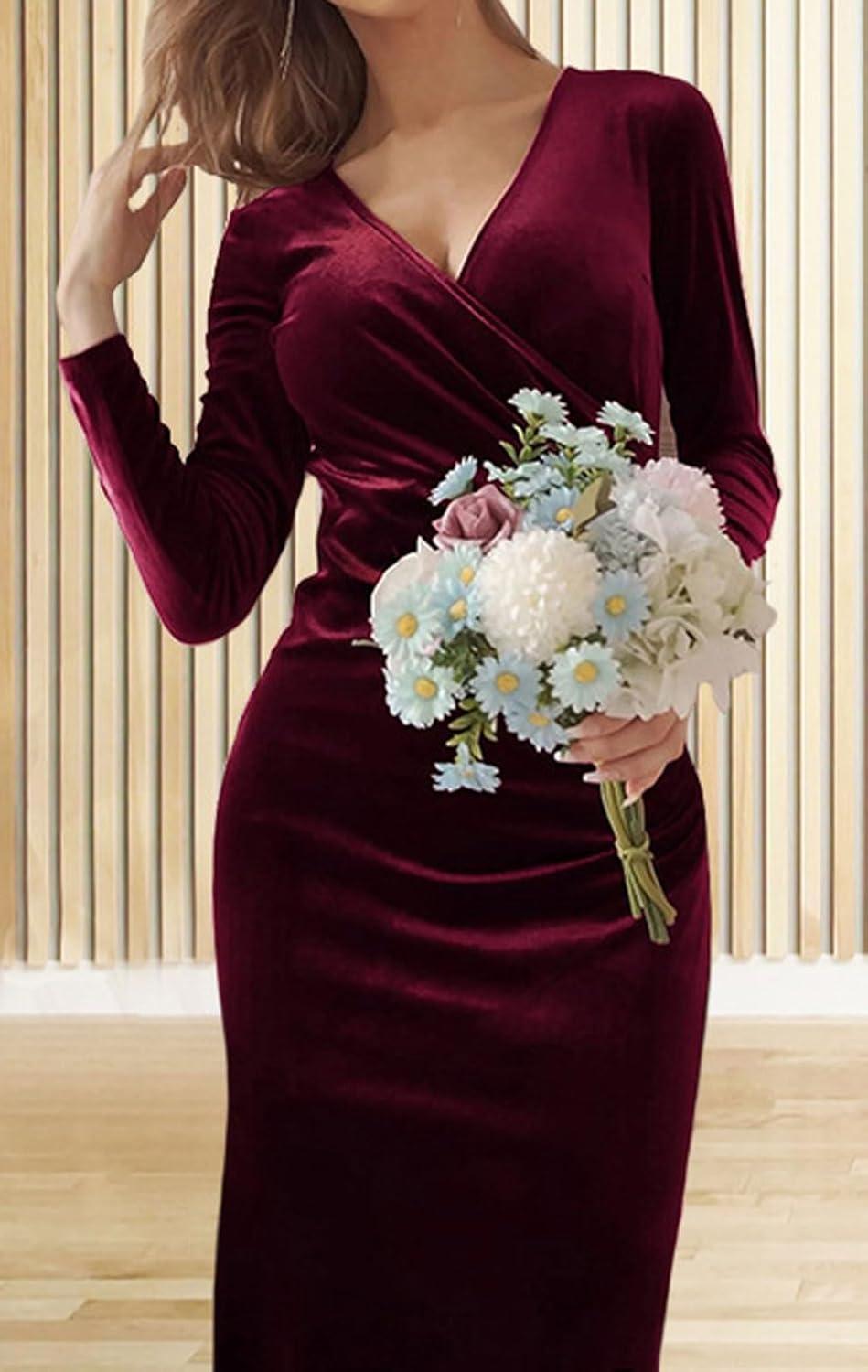 Women Bodycon Maxi Velvet Dress Long Sleeve Formal Dress Cocktail Wedding Quest Dress Wrap Evening Gown Bodycon long velvet dress/ micro stretch Skinny style, soft and breathable to wear in autumn and winter 【SELLING POINTS】—– Slim fit/ Wrap V neck/ Long sleeves/ Packaged hip/ High waisted/ Mermaid fishtail sheath gown/ Solid color- black dress, wine red, dark purple, green 【VERSATILE DRESS】—- Weekend long velvet dress, daily wear long formal dress for women , streetwear red dresses for women elegant prom gown, going out long formal dress for women sexy cocktail dresses for women evening party, holiday vacation velvet evening gown, night club party long sleeve evening gown long cocktail dress V neck wrap dress, business black formal dress sexy cocktail dresses for women evening party, long sleeve wedding guest dress floor length dress