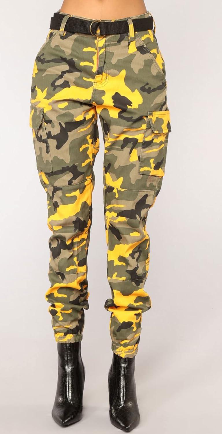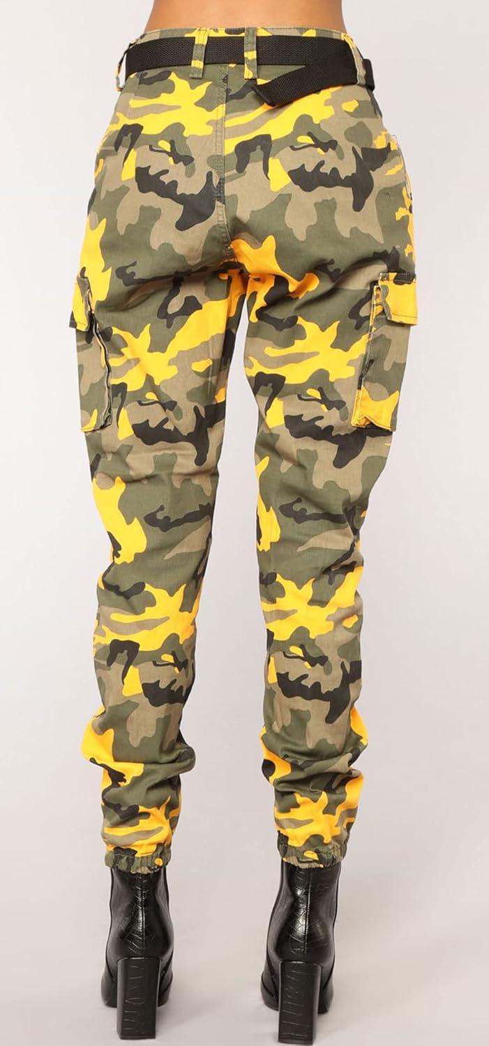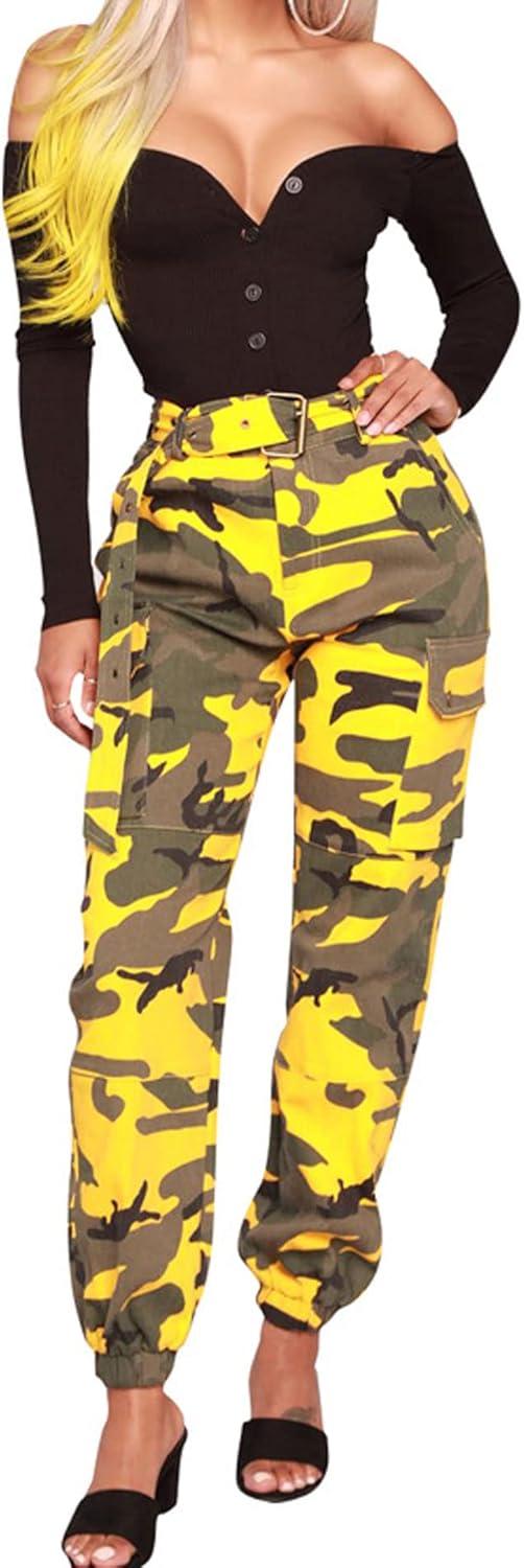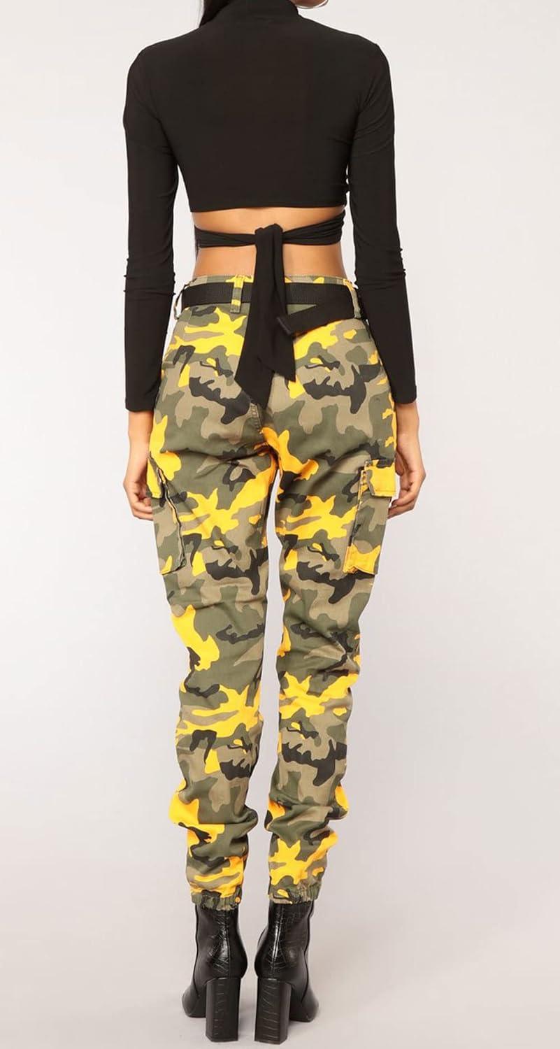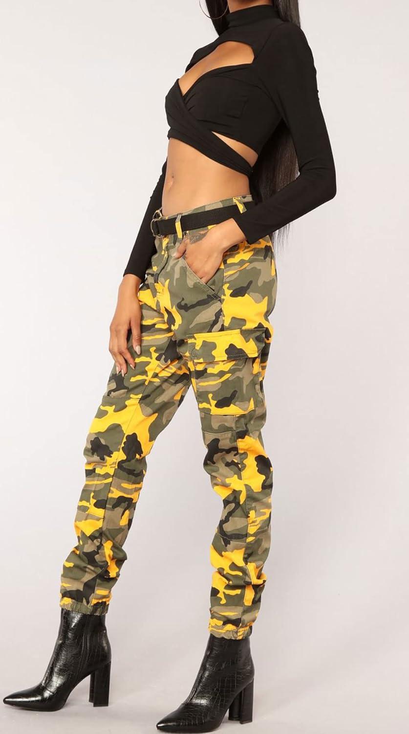 CHARTOU Women Camouflage Joggers Long Pants Mid Waist Camo Cargo Pants Workout Slacks Lounge Pants(Yellow)