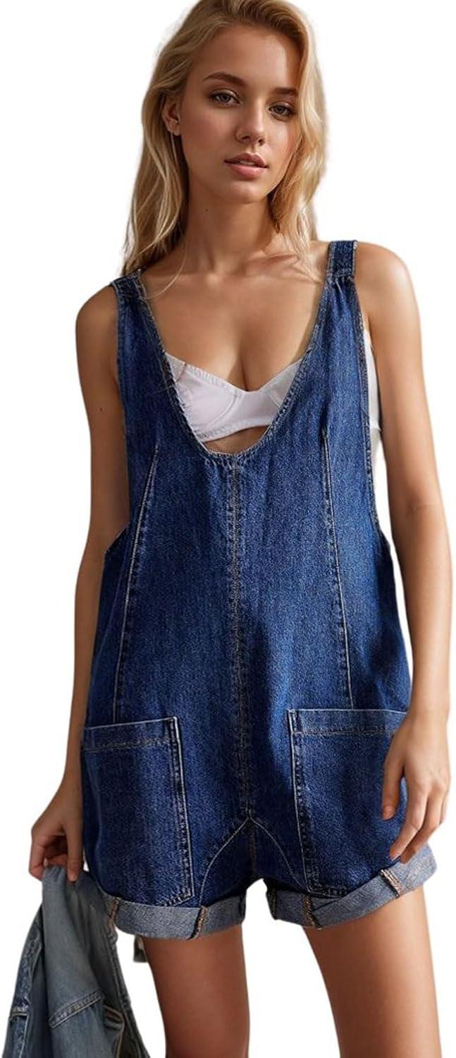 Don’t wait, get up to 50% off on CHARTOU Women Casual Denim Short Overalls Rolled Cuff Barrel Shorts Jumpsuit Rompers(Dark Blue) during our end-of-season sale event.