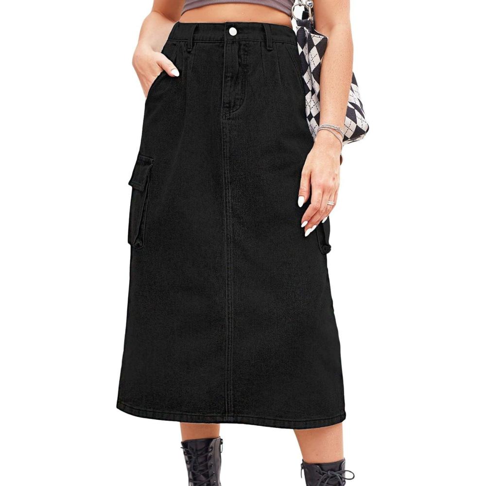 Women Casual High Waisted Denim Skirt Midi Jean Skirt Elastic Back A Line Skirt with Pockets Denim jean skirt, comfy and breathable to wear in spring, summer and fall Elastic back with zip front 【SELLING POINTS】—– Stretchy elastic high waist/ Multi pockets/ Solid color- blue jeans, light khaki, black, army green 【VERSATILE DENIM JEAN SKIRT】—- Weekend denim skirt midi jean skirt mid length, daily wear denim jeans cargo skirt y2k A line skirt, streetwear high waisted skirt zip up cargo denim skirt, going out patchwork skirt, holiday vacation denim jeans A line skirt, night club party blue jean skirts for women