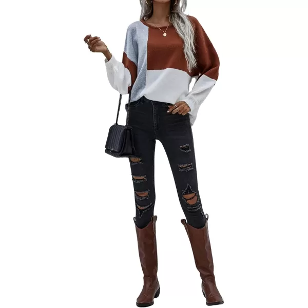 CHARTOU Women Casual Knit Sweater Patchwork Pullover Color Block Loose Tie Back Sweater Knitwear(Caramel)