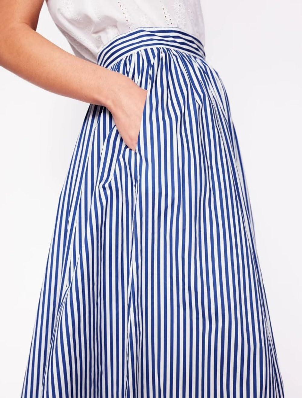 CHARTOU Women Casual Stripe Skirt Back Elastic Waist Long Flowy A Line Skirt with Pockets(Blue)