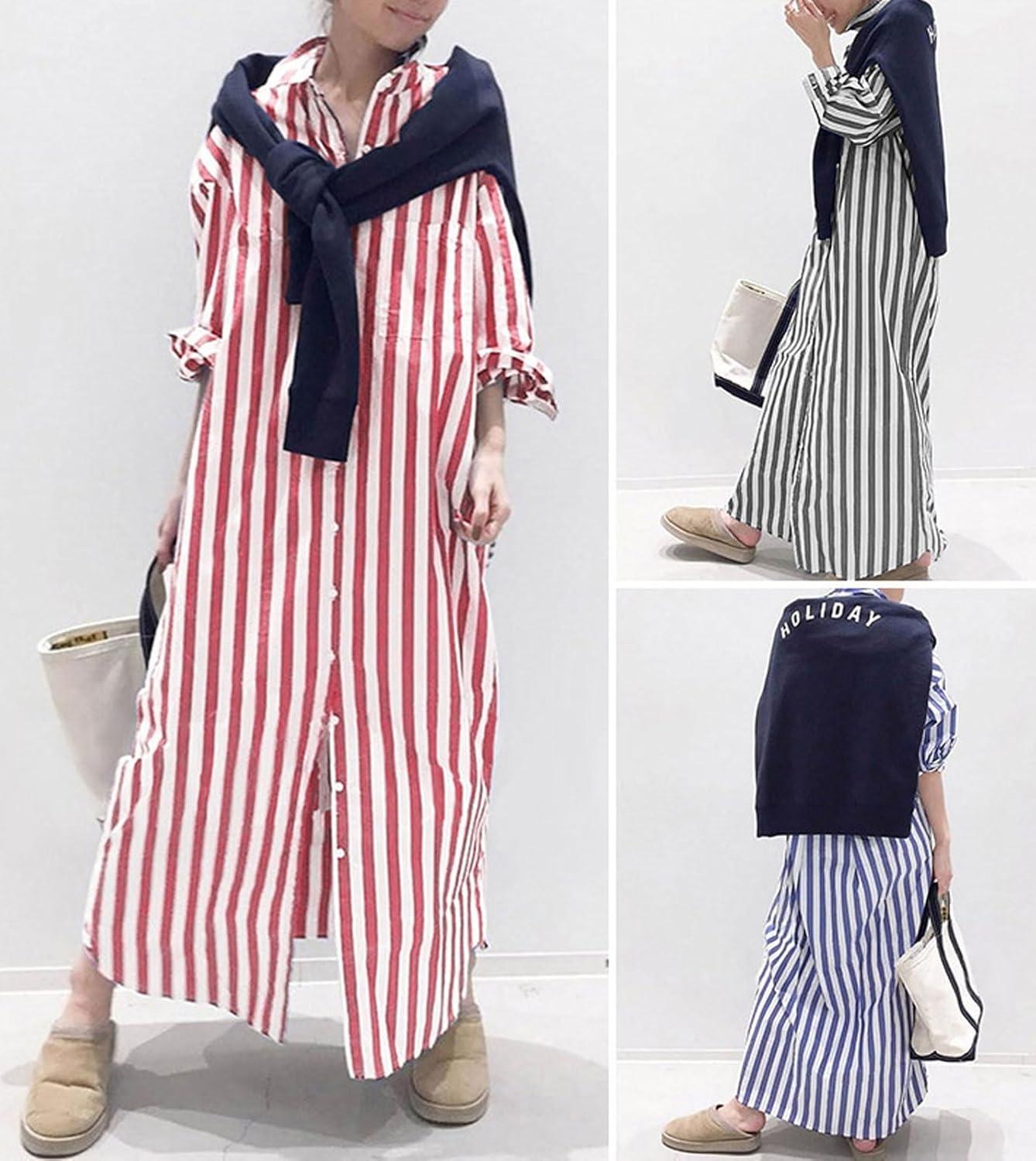 CHARTOU Women Casual Striped Shirt Dress Button Down Long Sleeve Kaftan Long Flowy Dress Cardigan Kimono Shift Dress 【One Size Guide for US XS-L】—- Bust= 120 CM (47.24 INCHES), Shoulder= 57CM (22.44 INCHES), Sleeve= 45 CM (17.72 INCHES), Length= 130 CM (51.18 INCHES) 【Lightweight Striped Shirt Dress Design】—- This striped shirt dress is crafted from breathable cotton fabric, the long collared shirt dress offers an casual loose appearance, keep roomy and cool whole day in spring, summer and fall. This long sleeve maxi dress is suitable for party, beach, vacation, work, running errands. 【Selling Points for Button Down Dress】—– Turn down collared shirt dress/ Long sleeves with buttoned cuffs/ Striped shirt dress stripes printed shift dress/ Button up maxi dress button front/ Lightweight and thin fabric 【Color Block Striped Shift Dress】—– Blue and white dress, black maxi dress with sleeves, black and white dress, red maxi dress 【Versatile Long Sleeve Maxi Dress】—- Weekend casual striped shirt dress long button down dress shift dress cotton maxi dress caftan long cardigan kimono long sundress women 2024 button up maxi dress, shirt dress long sleeve maxi dress button up shirt dress, long flowy summer dress overall dress kaftan, vacation boho dress jumpers, long maxi dresses swing collared tunic dress, swimsuit beach cover ups gauze long tee shirt dress button front dress, picnics chambray house dress spring work dress Women Cotton and Linen Shirt Dress Casual Loose Maxi Dresses Shirt Dresses for Women Casual Long Sleeve Color Block Loose Pocket Button Down Maxi Dresses Womens Chic Button Down Rolled-Up Sleeve Long Cotton Blouse Maxi Dress Casual Short Sleeve Button Down Dress Maxi Long Kimonos Cardigans Split Swimsuit Beach Cover Ups