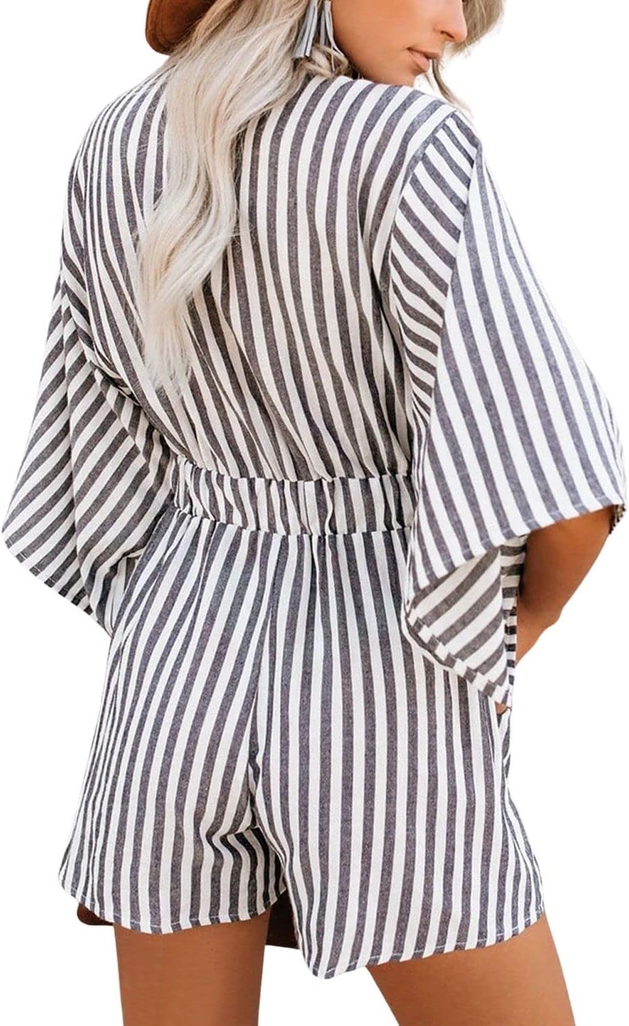 Be the first to review “CHARTOU Women Casual Summer Tie Front Ruffle Short Romper Cutout Beach One Piece Short Jumpsuit(Stripes)”
