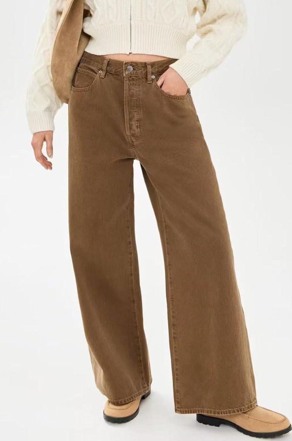 CHARTOU Women Casual Wide Leg Jeans High Waisted Loose Straight Denim Pants/ Wide Leg Denim Pants for Women/ Casual Straight Jeans for Women/ Vintage Women Loose Denim Pants/ Size Tips: XS=US 0-2, S=US 4-6, M=US 8-10, L=US 12-14, XL=US 16-18; Constructed With Stretch Denim Material, This Checker Cardigan Sweater Flexibility To Accommodate Various Body Shapes And Sizes, Effortlessly Providing A Flattering Fit/ Wide Leg Denim Pants: Straight Wide Leg Denim Pants Will Effortlessly Shape Your Leg, and Easily Show Your Slouchy Fashion Style, Combines Comfort Fit and Stylish Taste, High Waist Pants Wear With Slim Fit Tops For A Feminine Look/ Design: Zip-Fly With Button Closure; High-Waist Denim Jeans For Women; Casual Loose Fit Wide Leg Denim Pants; Straight Leg Comfort Fit Women Pants; Vintage Dark Khaki Casual Wide Leg Denim Jeans; Fall Women Denim Pants/ Occasion: High Waist Denim Pants For Women Fashion/ Comfort Casual Loose Denim Jeans for Women Fall Pants/ Dark Khaki Cow Girl Wide Leg Denim Pants For Weekend Outing/ Straight Leg Long Blue Denim Jeans For Women Casual Work Pants/ Baggy Wide Leg Jeans For Women Holiday Comfort Pants