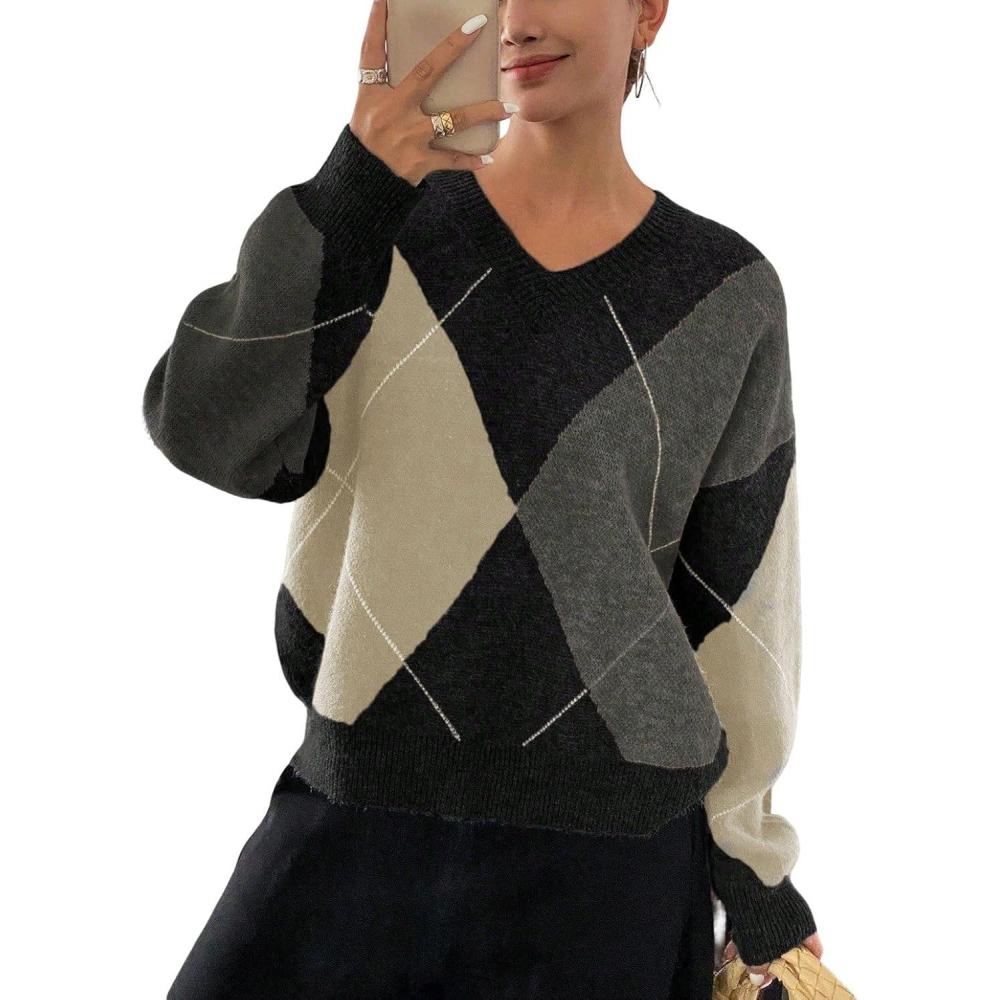 Get your hands on our newest CHARTOU Women Causal V Neck Pullover Sweater y2k Argyle Plaid Sweater Preppy Style Knitwear Tops(Black) and enjoy a limited-time discount offer.