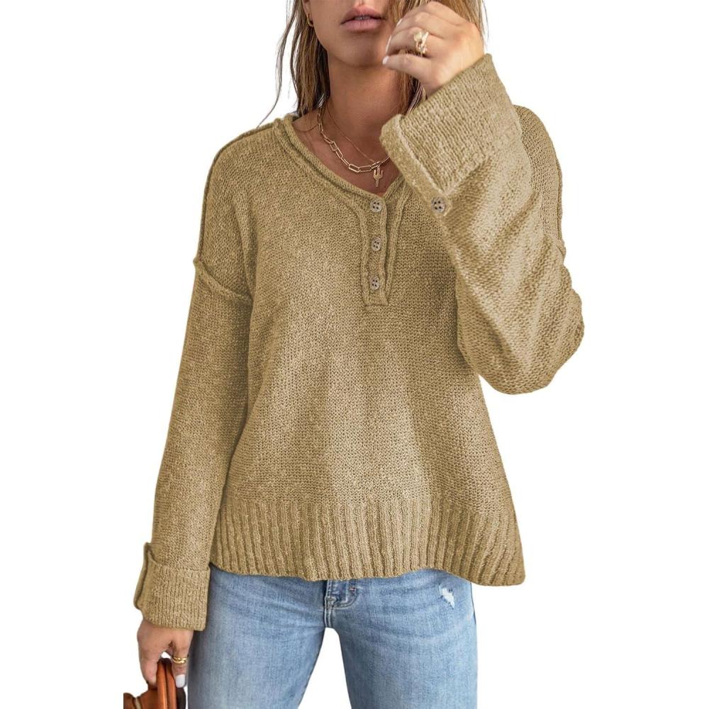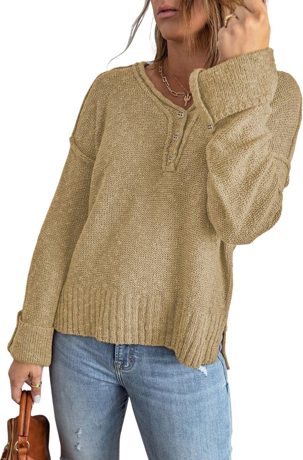 CHARTOU Women Chunky Knit Sweater Pullover Roll Up Long Sleeve Knitted Sweater Jersey Jumper(Khaki)